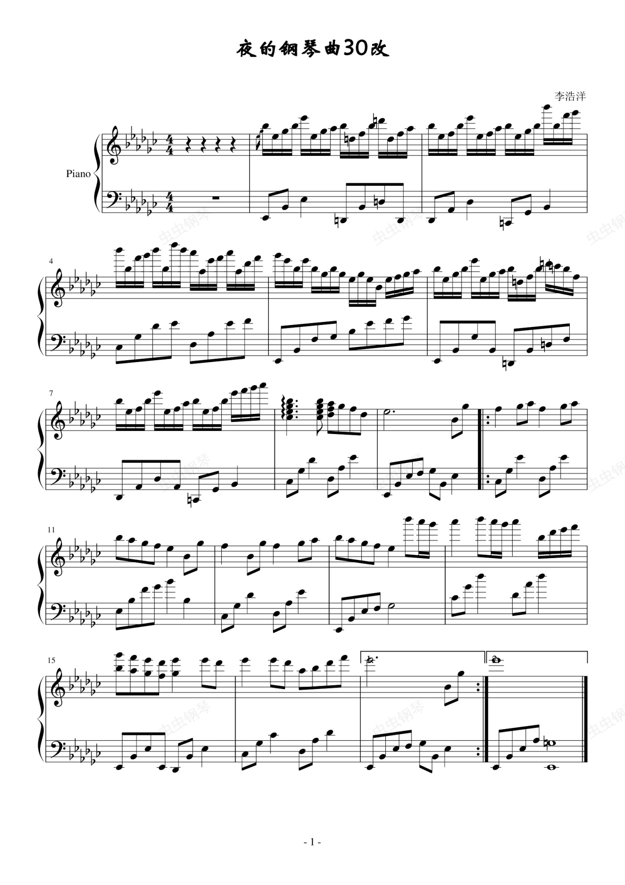 钢琴谱:夜的钢琴曲30改