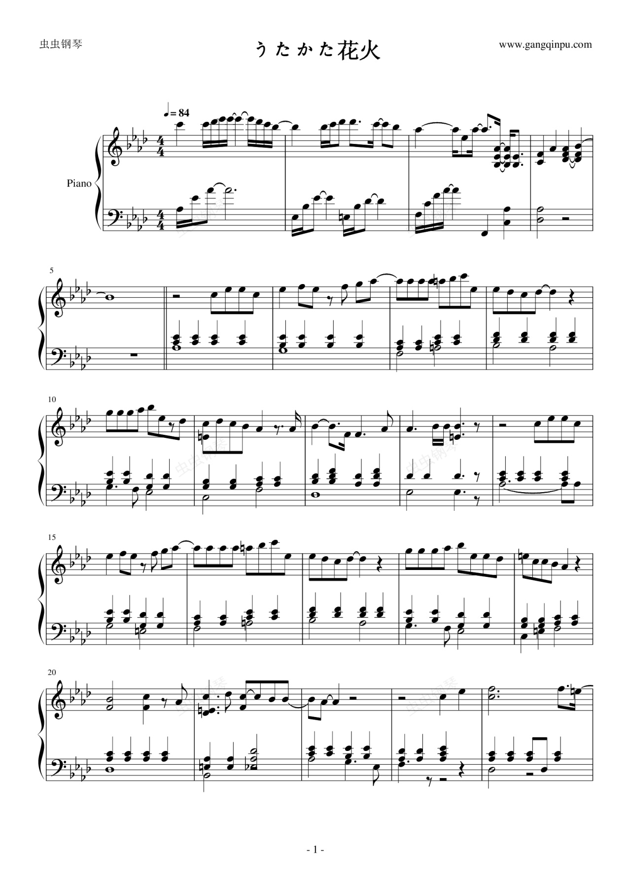 钢琴谱:うたかた花火