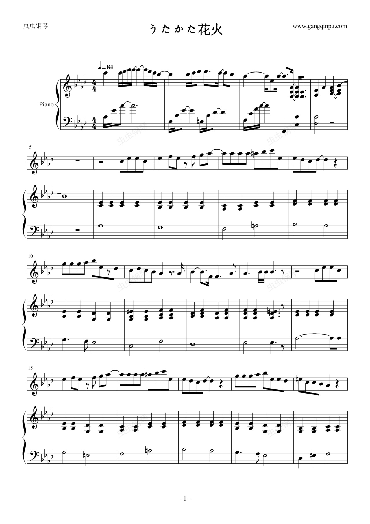 钢琴谱:うたかた花火钢琴伴奏弹唱