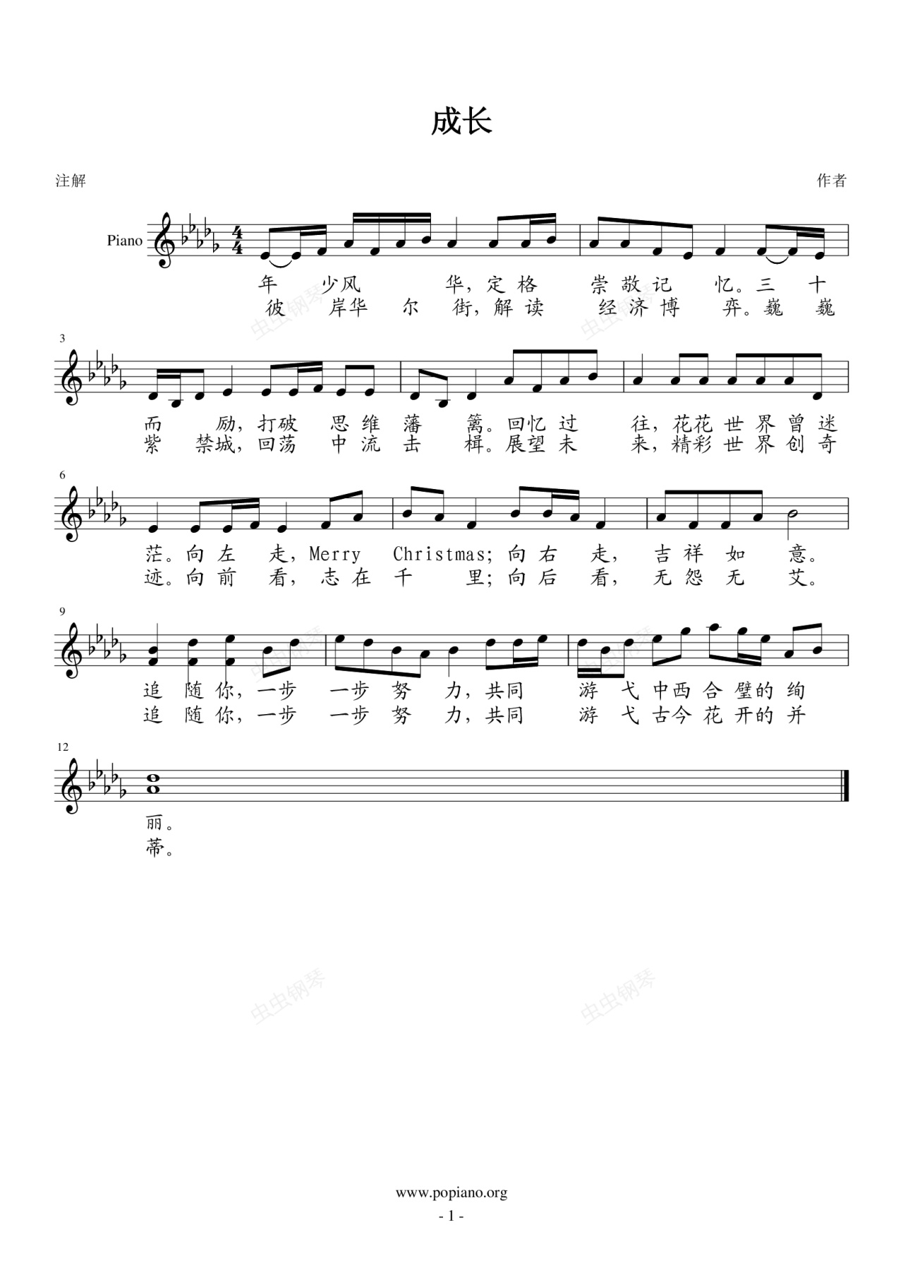 钢琴谱:成长(A、B段)