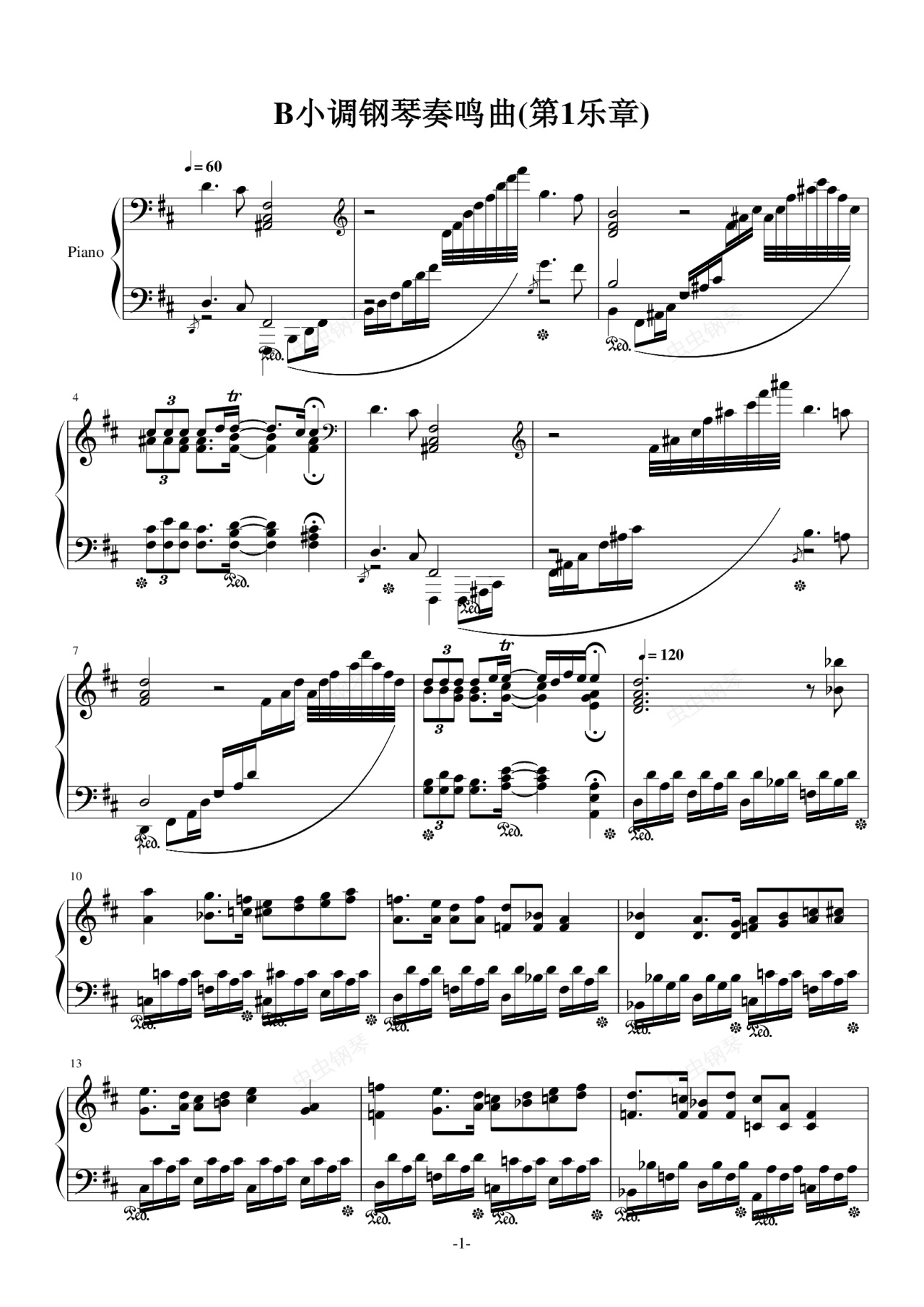 钢琴谱:H22-B小调钢琴奏鸣曲(第一乐章)