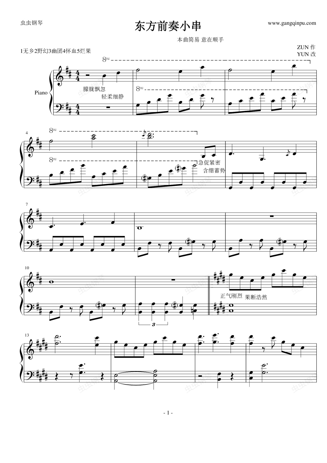钢琴谱:[Touhou project] 简易东方前奏小串
