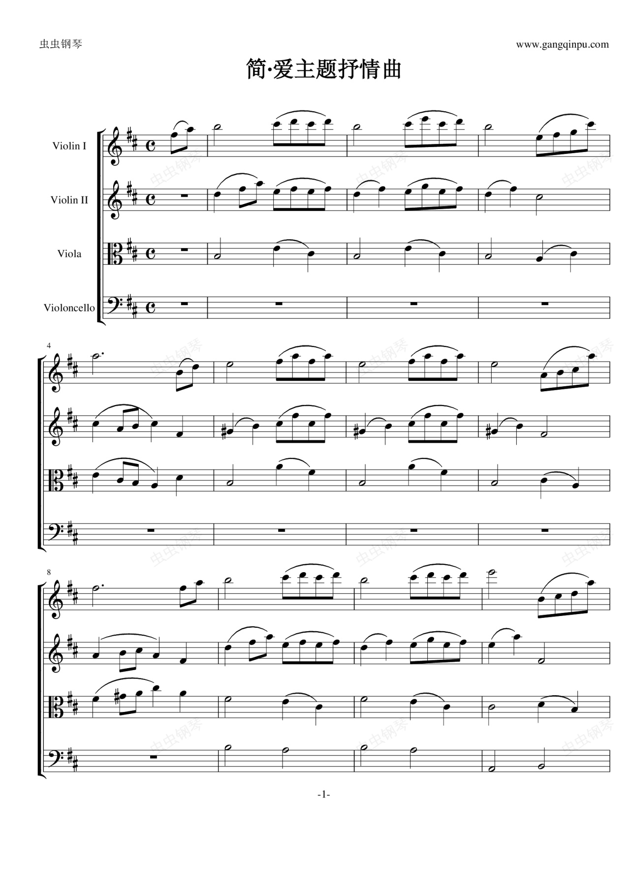 钢琴谱:H23-简·爱主题抒情曲(弦乐四重奏)