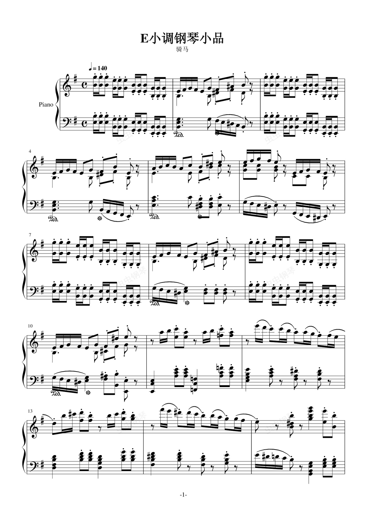 钢琴谱:H24-E小调钢琴小品(骑马)