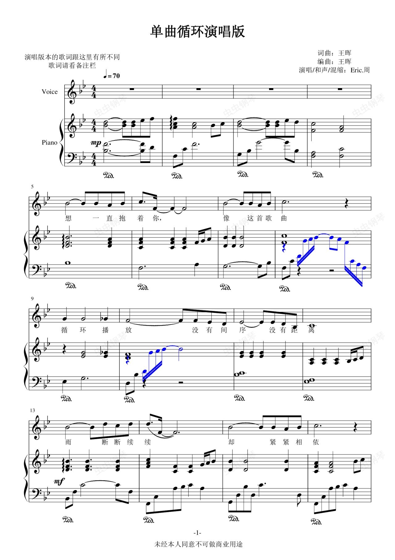 钢琴谱:单曲循环