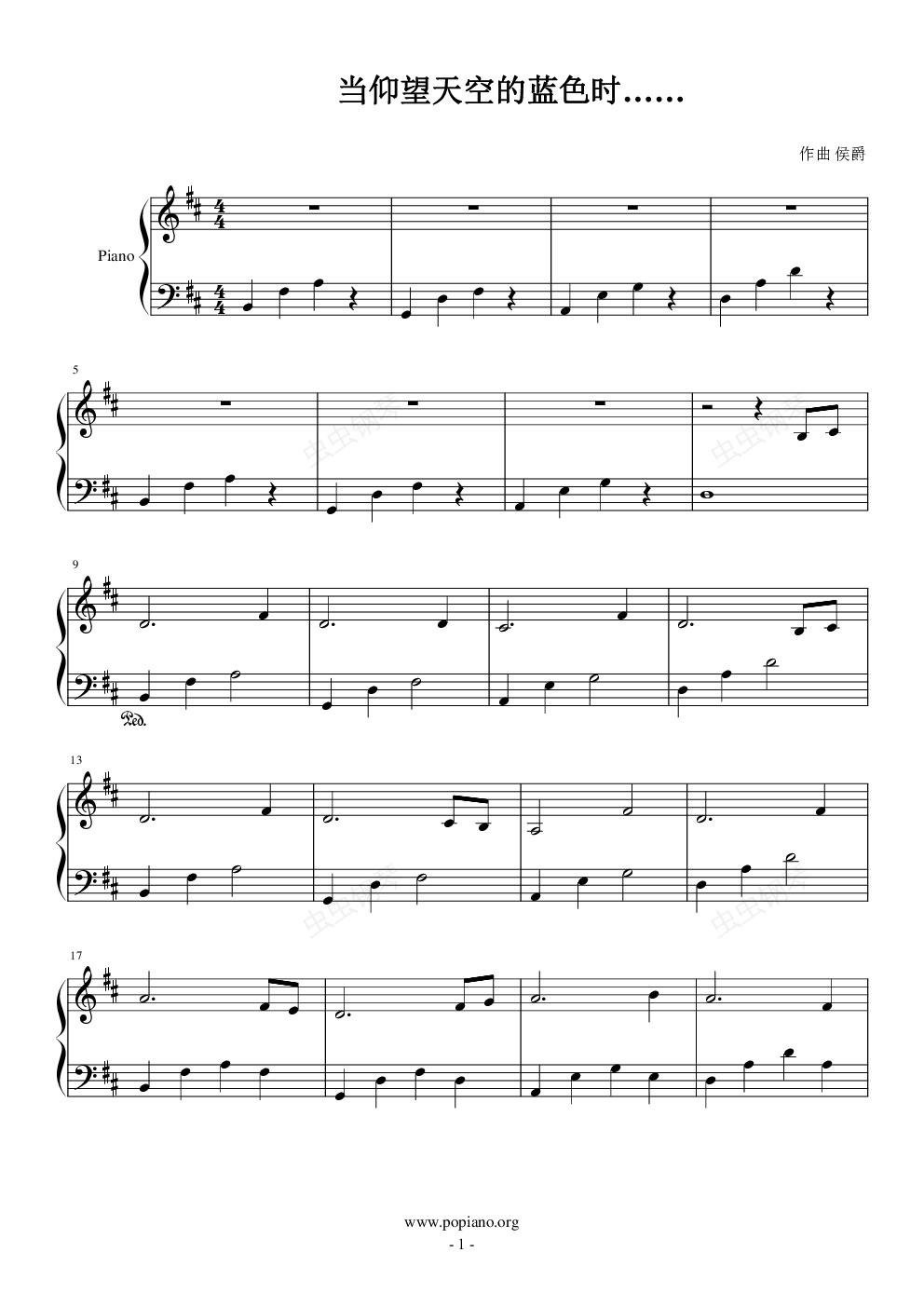 钢琴谱:当仰望天空的蓝色时(一)