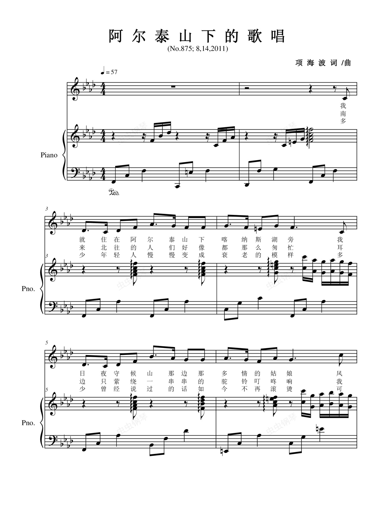 钢琴谱:阿尔泰山下的歌唱