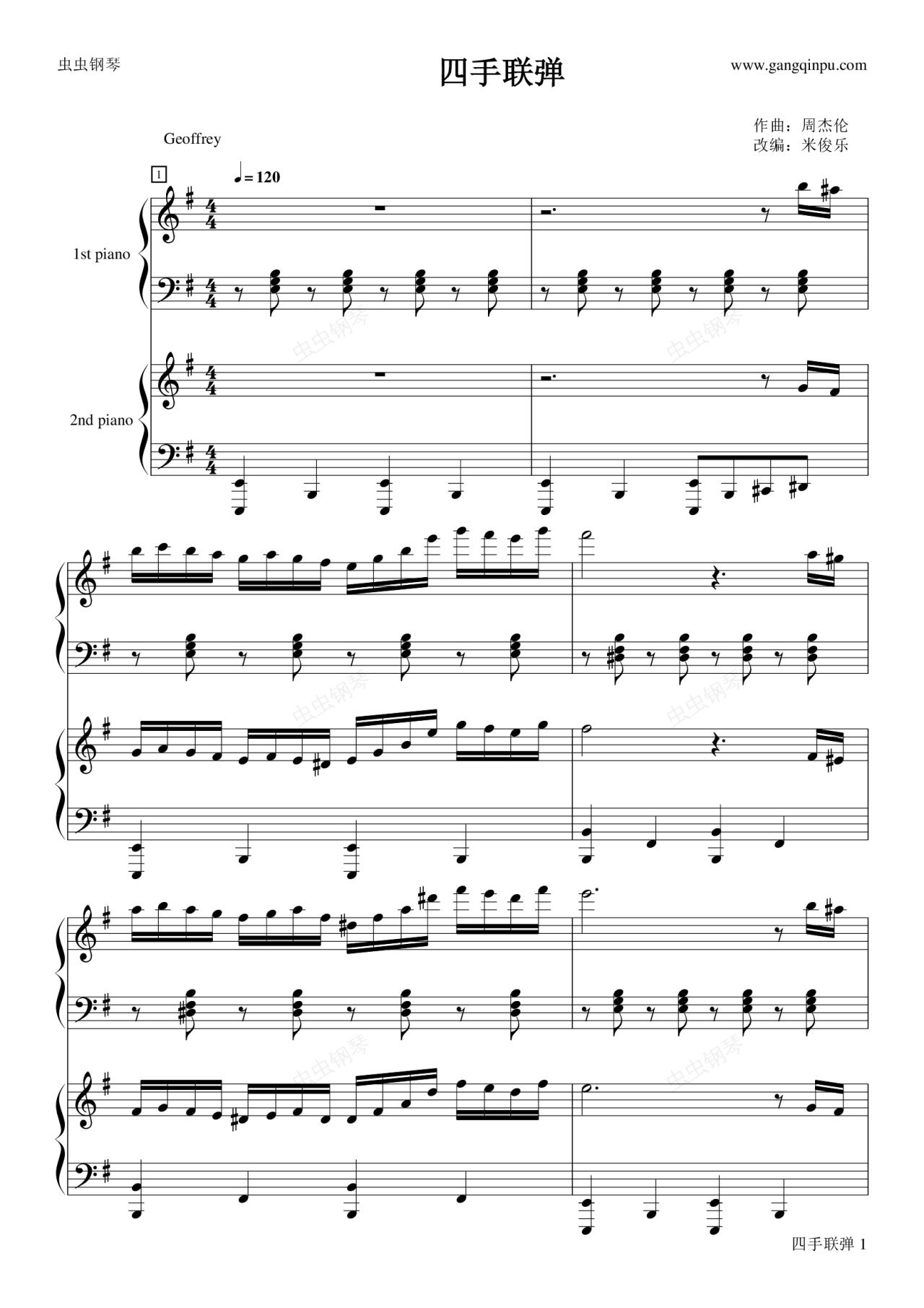 四手联弹--不能说的秘密 请管理员上传这个谱子,上一个谱子没有做好,有错音,不上传了,谢谢!