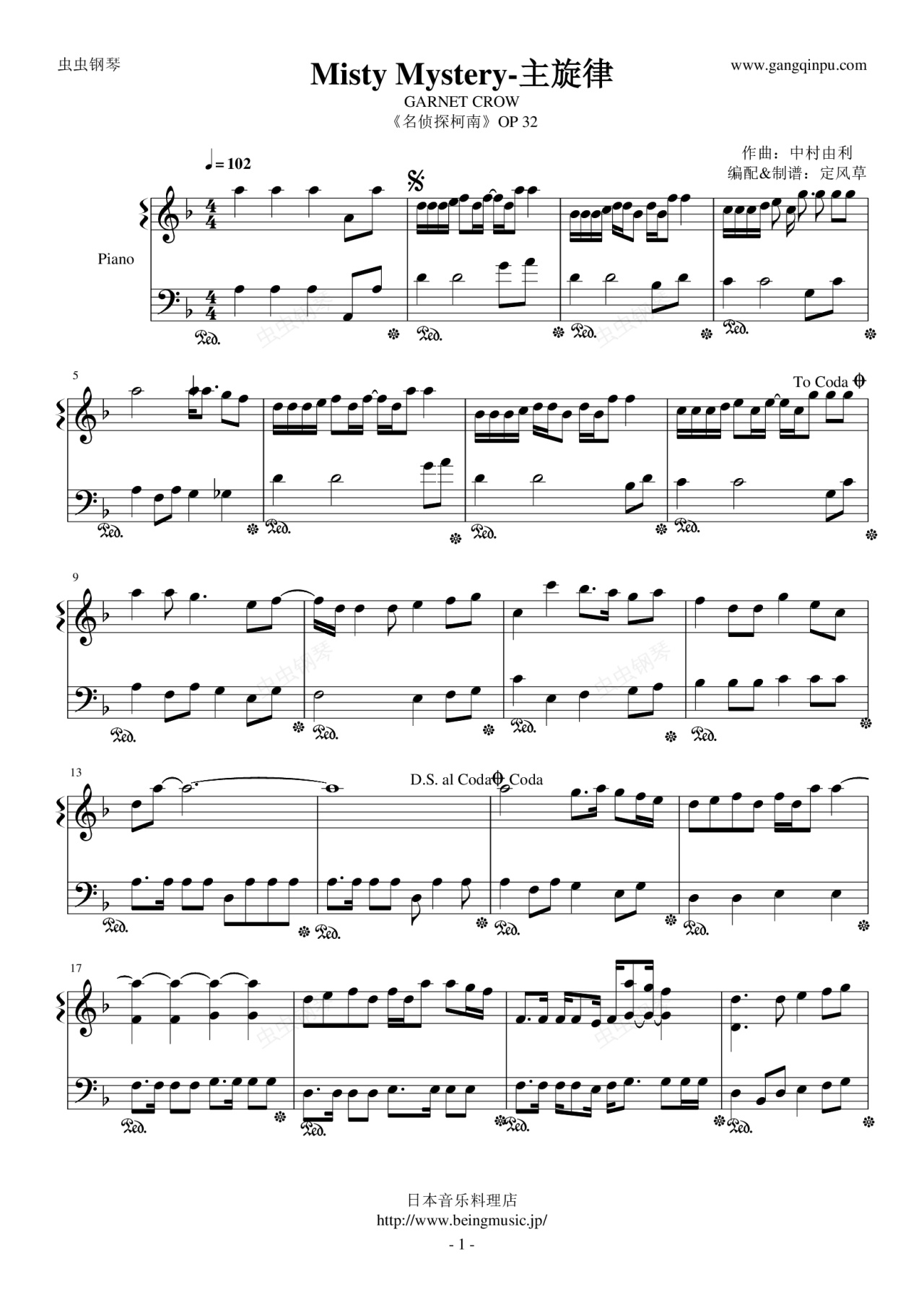 钢琴谱:Misty Mystery-主旋律