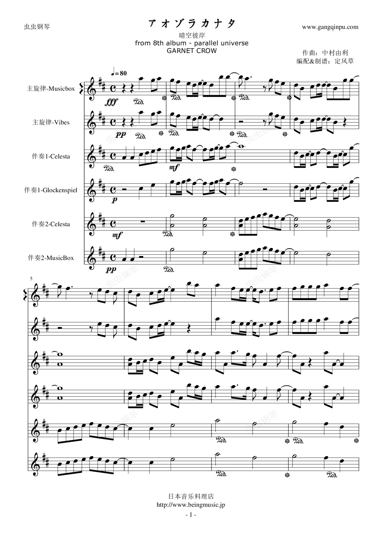 钢琴谱:アオゾラカナタ(青空彼岸)-主旋律