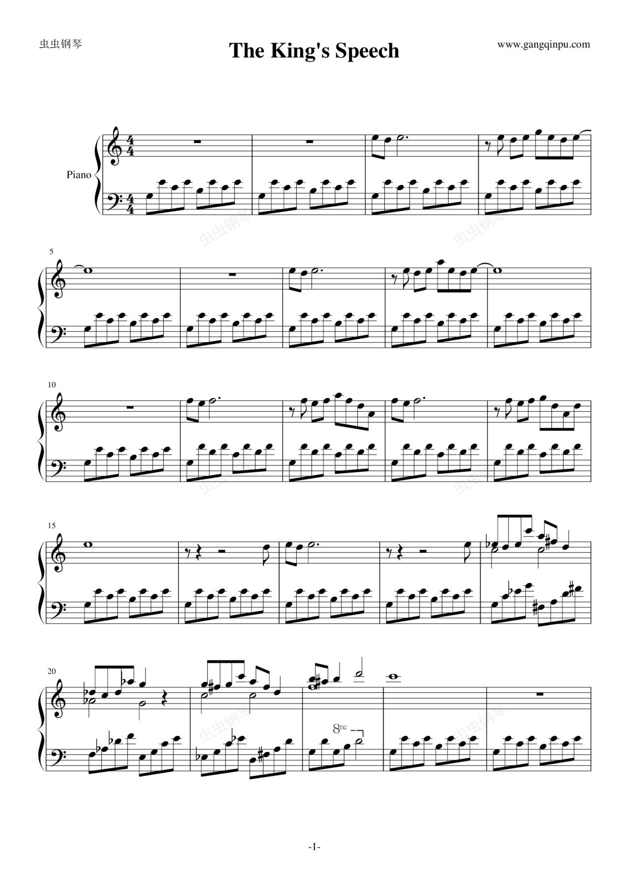 钢琴谱:国王演讲片头曲