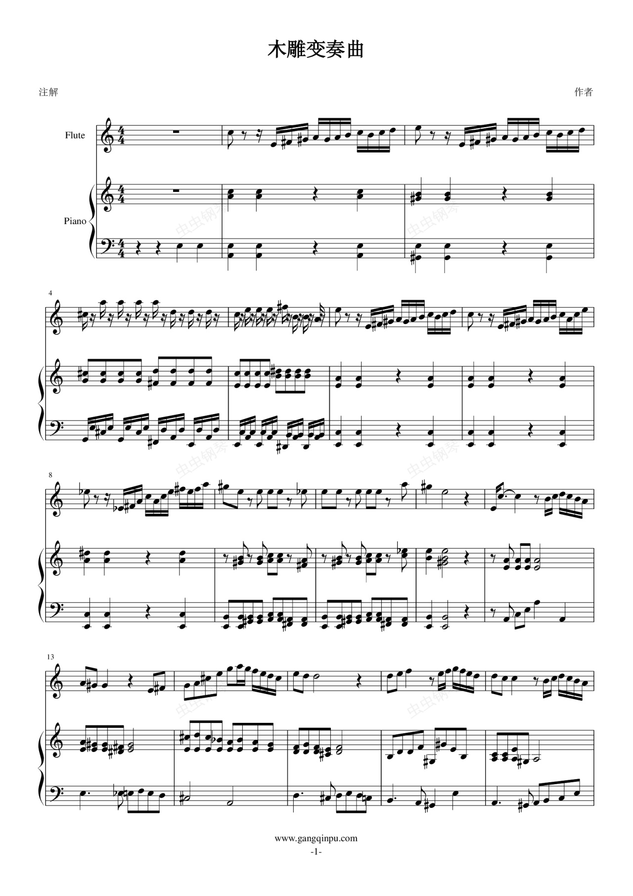 钢琴谱:木雕变奏曲(长笛-钢琴)