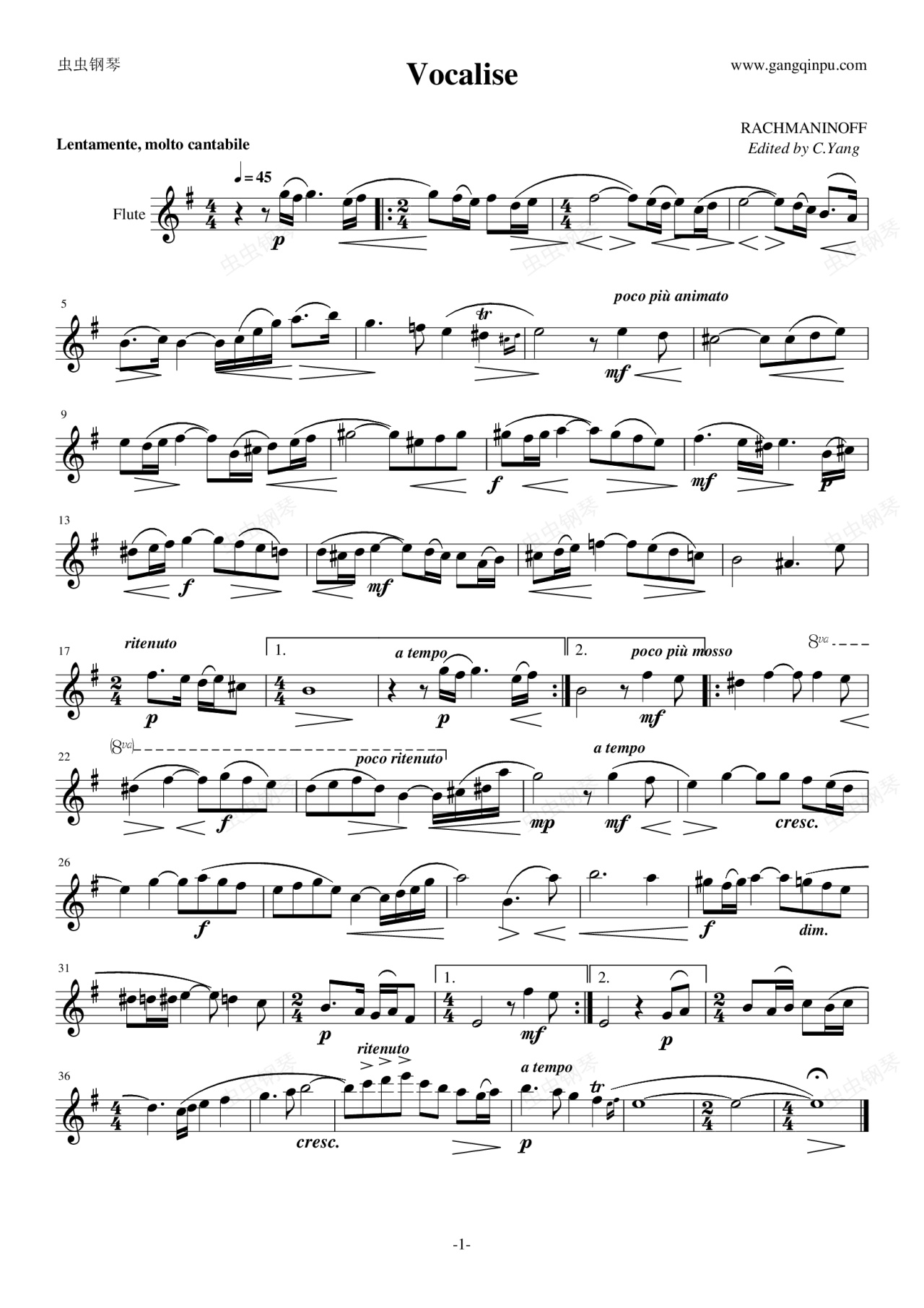 钢琴谱:练声曲(长笛)
