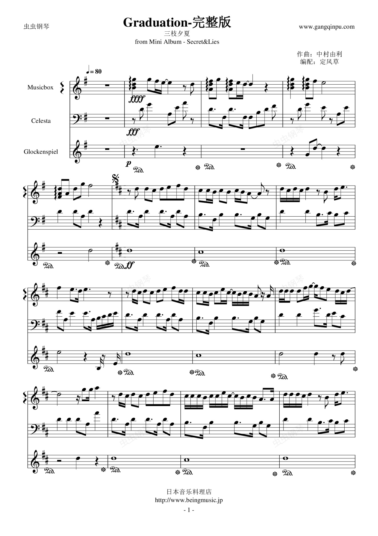 钢琴谱:Graduation-三枝夕夏-柯南歌手