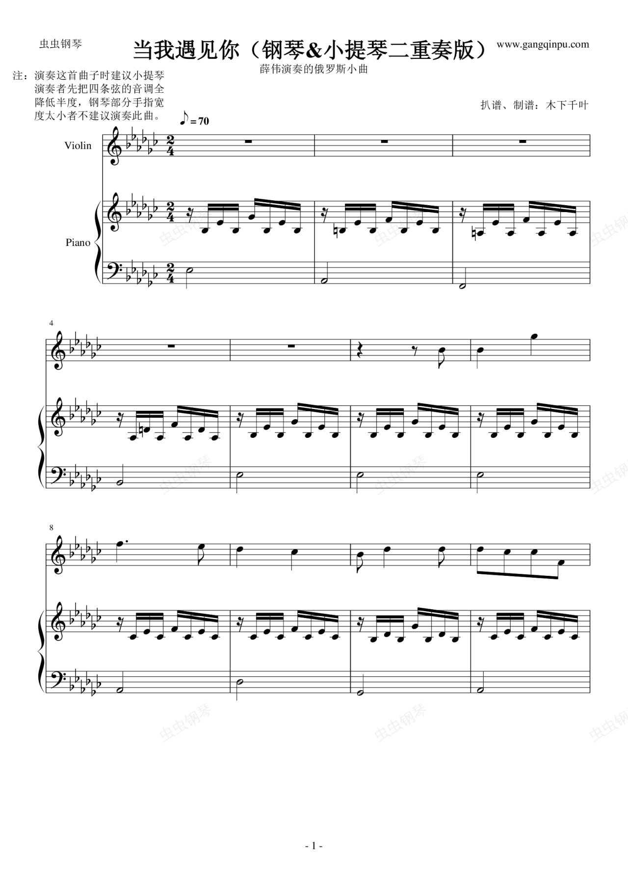 钢琴谱:当我遇见你