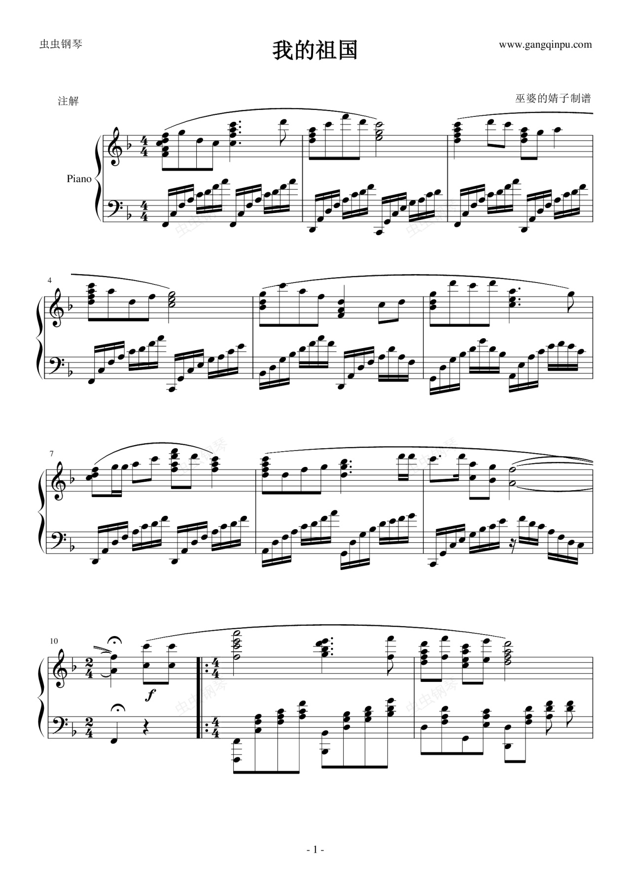 钢琴谱:我的祖国