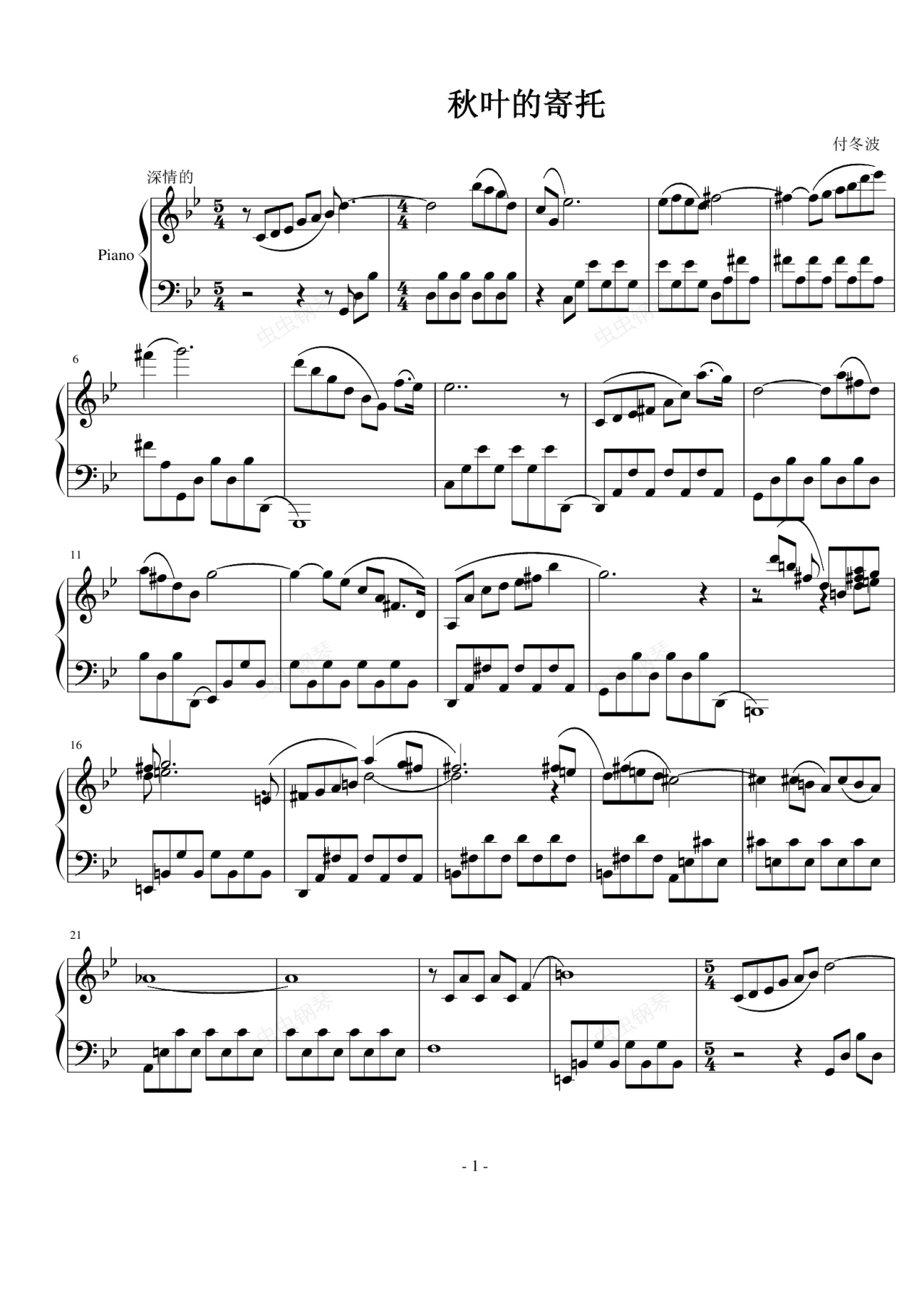 钢琴谱:秋叶的寄托