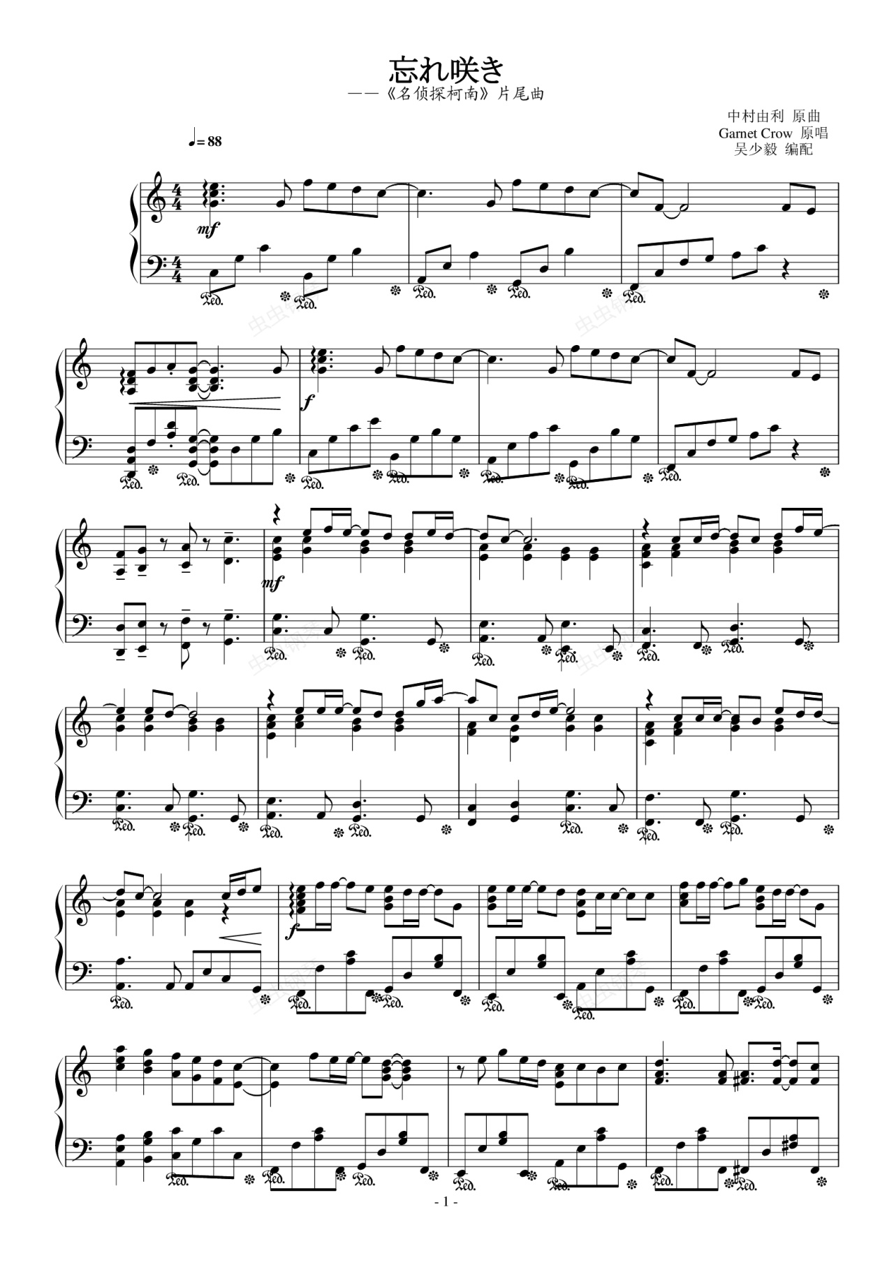 钢琴谱:忘れ咲き(完整版)名侦探柯南片尾曲