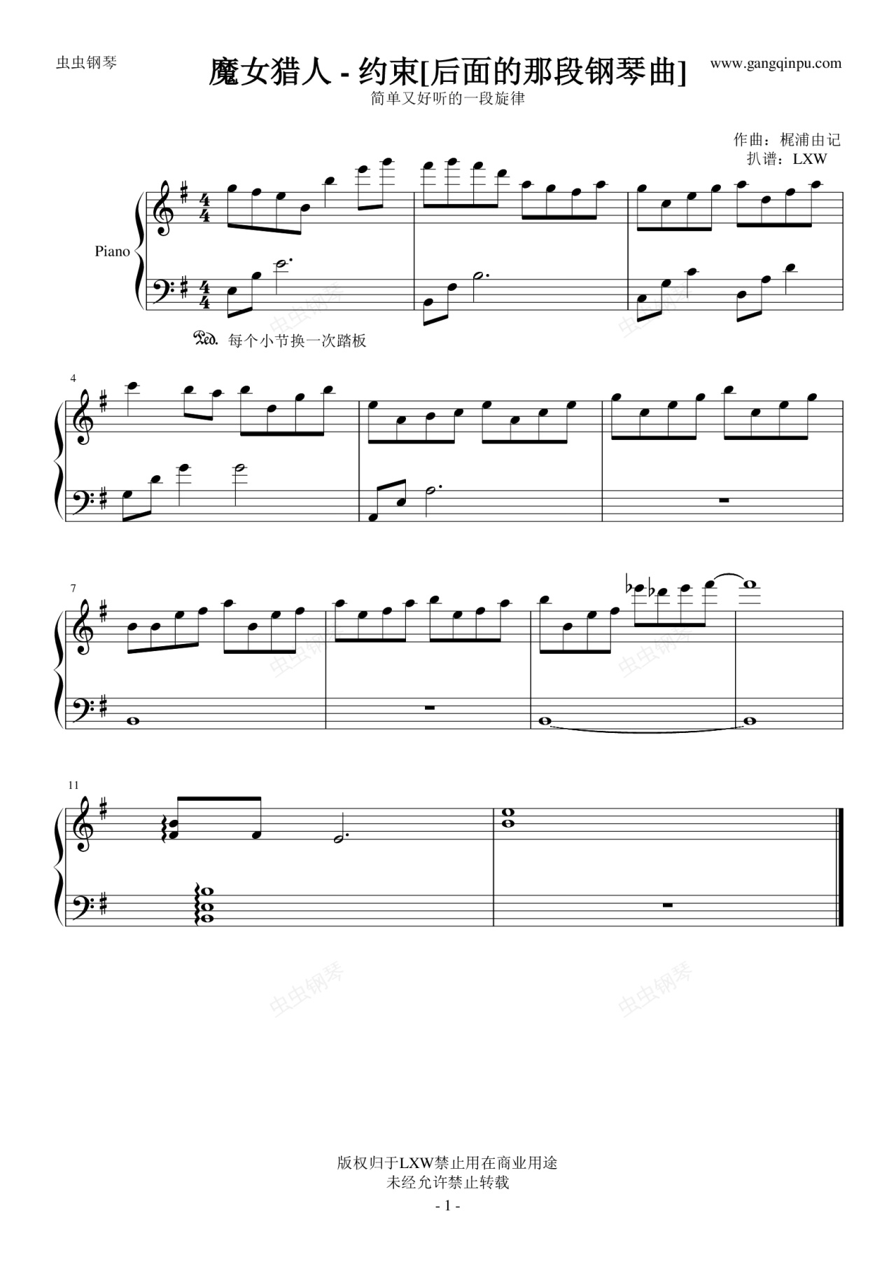 钢琴谱:魔女猎人 - 约束[后面的那段钢琴曲]