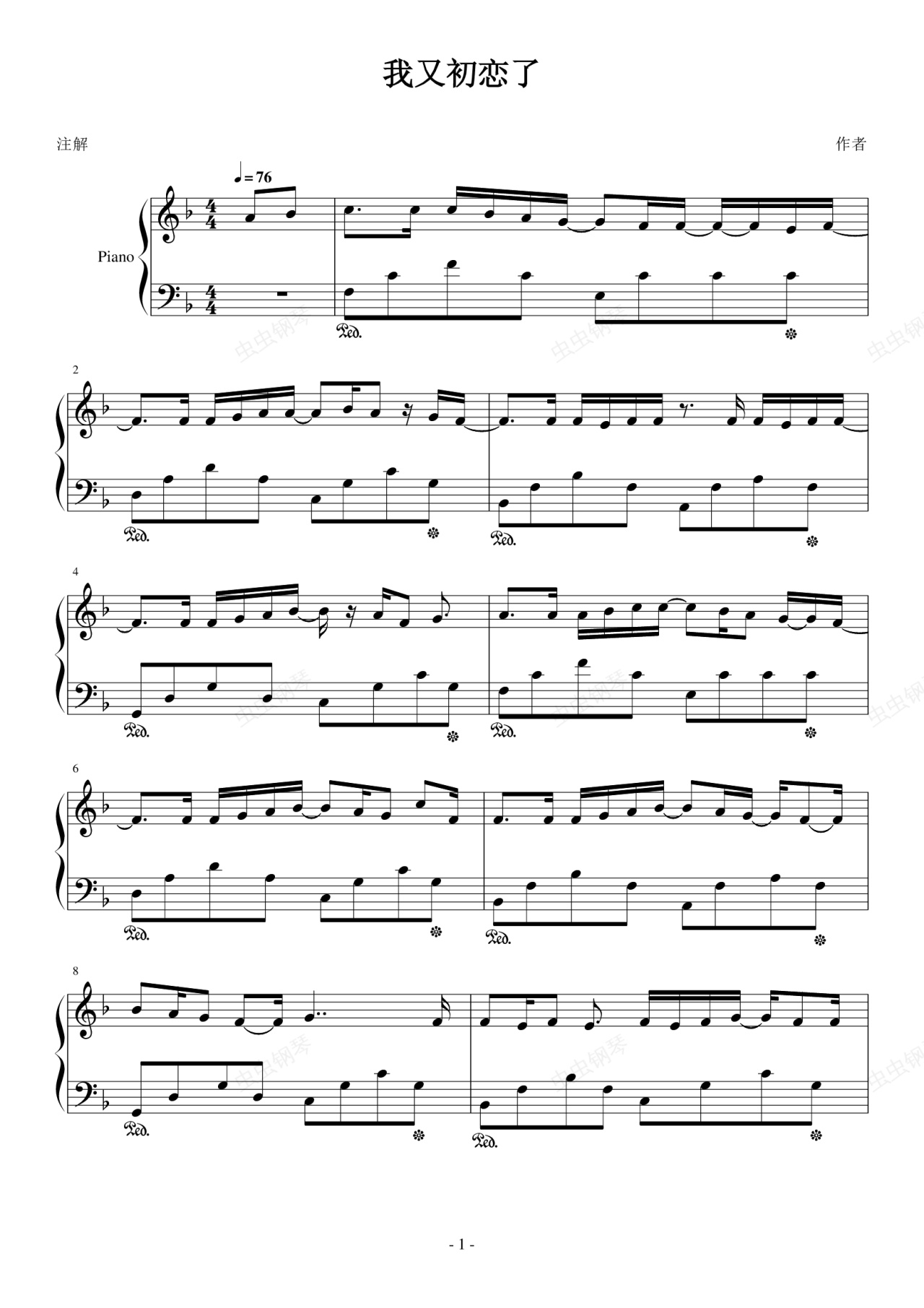 钢琴谱:我又初恋了(原创)
