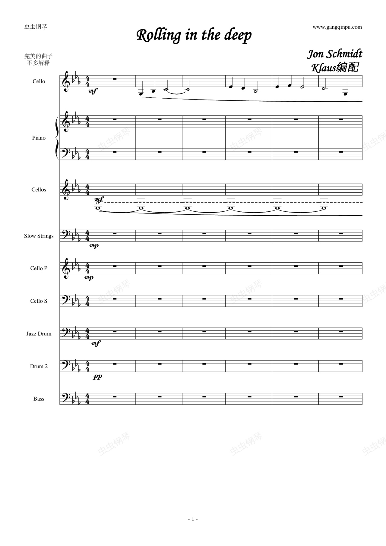 钢琴谱:Rolling in the deep(钢琴&大提琴)