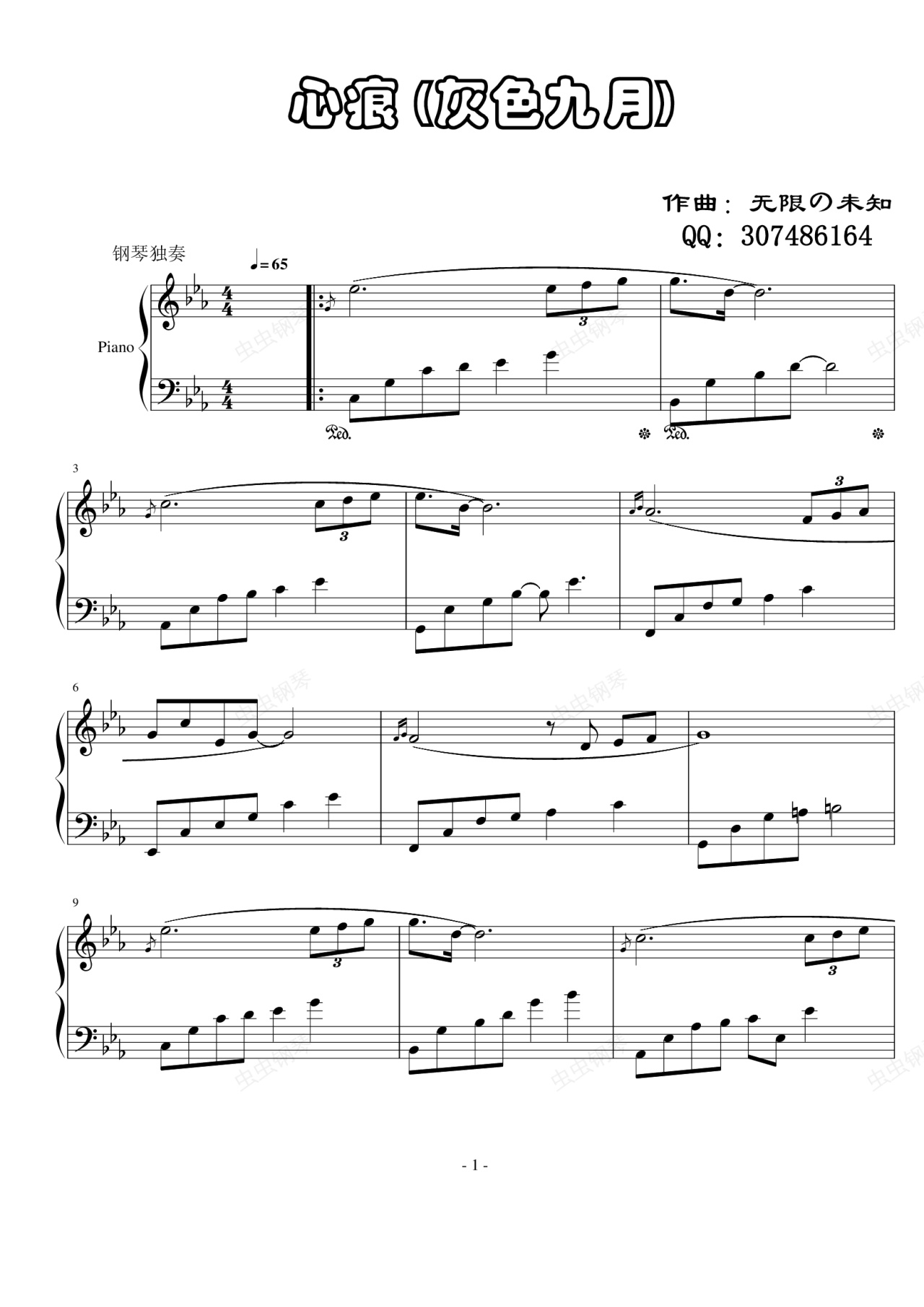 钢琴谱:心痕(灰色九月)