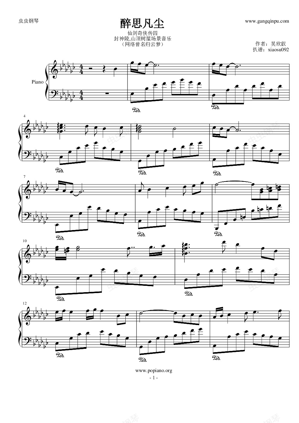 钢琴谱:醉思凡尘(归云梦)-仙剑奇侠传四