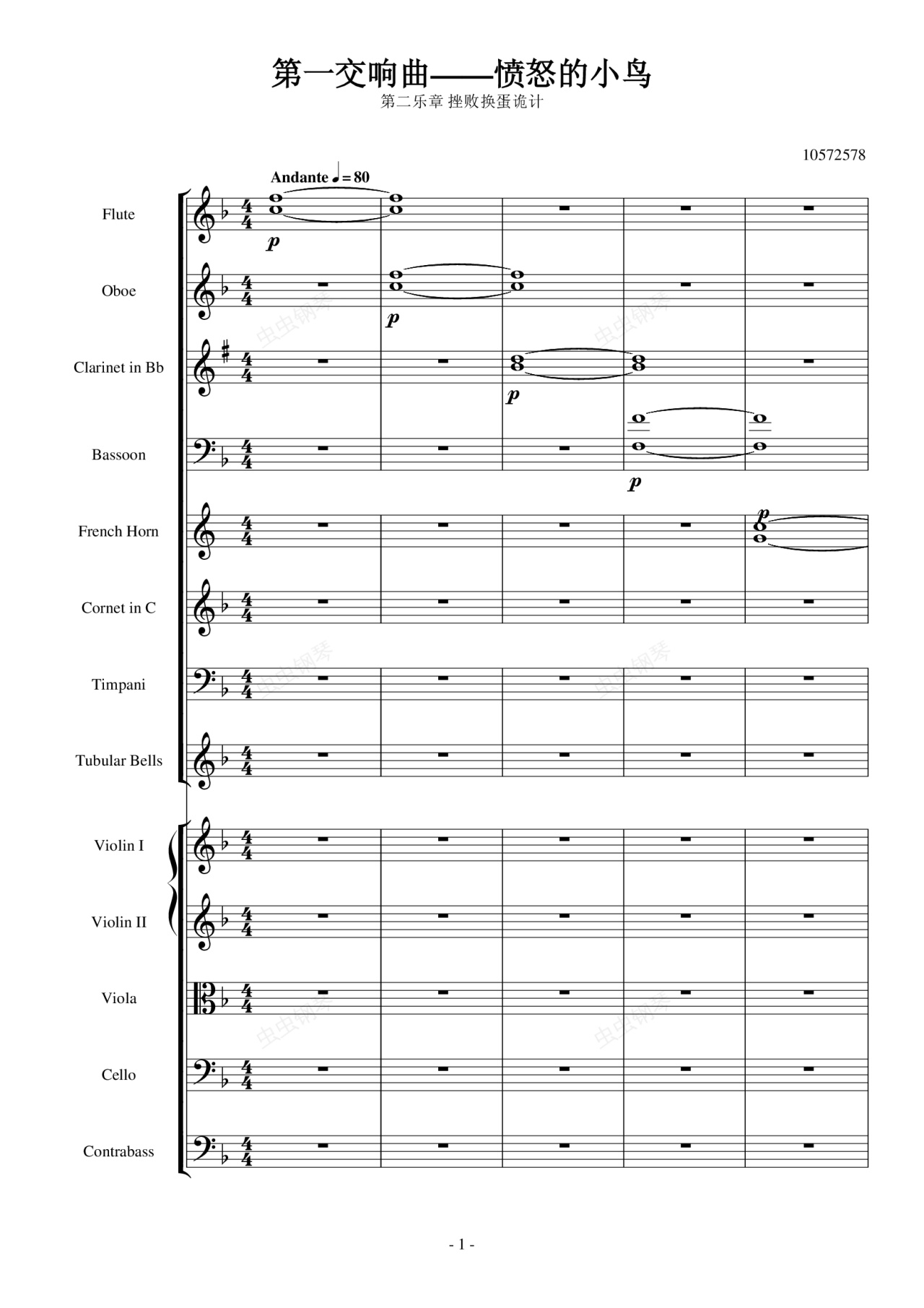 钢琴谱:愤怒的小鸟交响曲第二乐章Op.5 no.2
