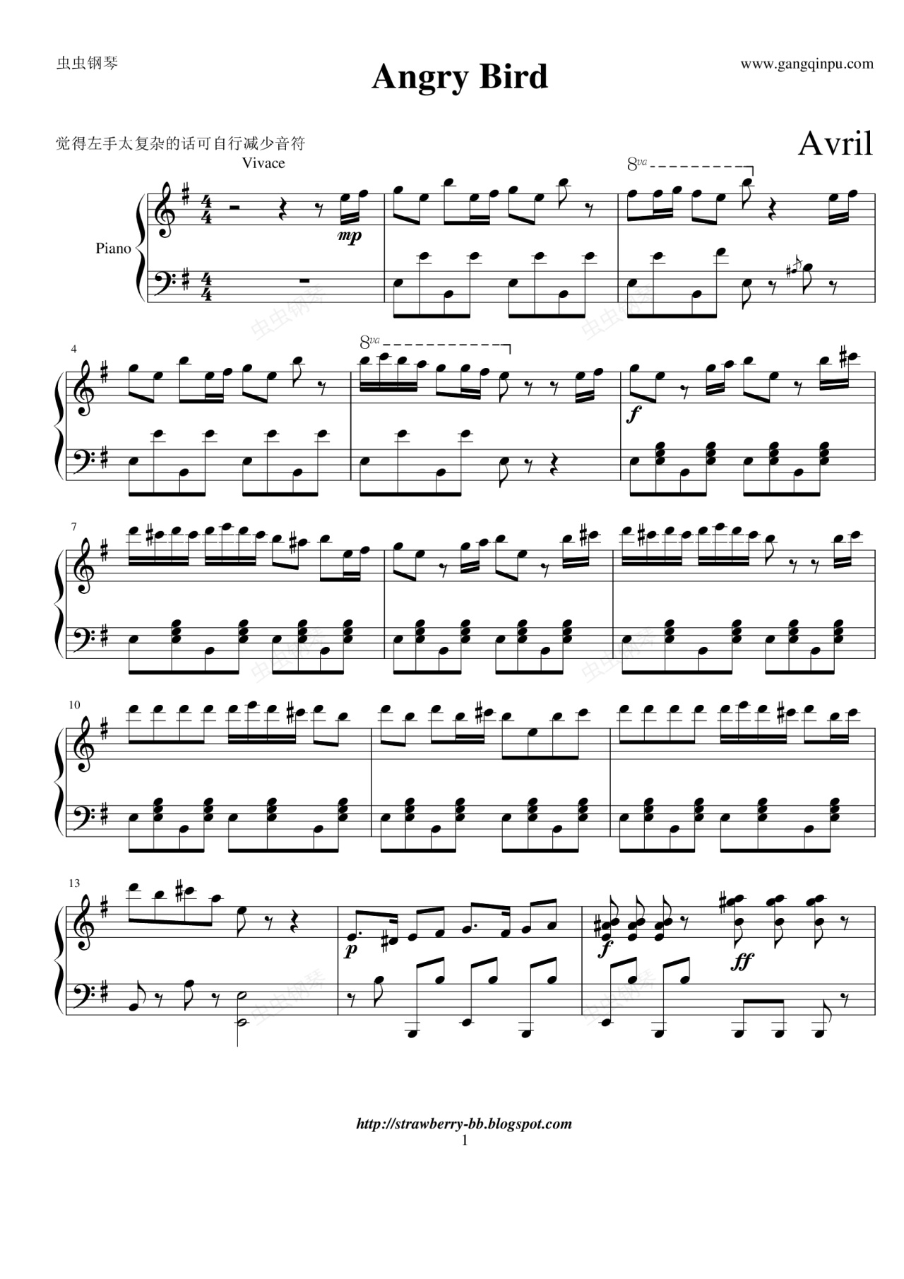 钢琴谱:愤怒的小鸟主题曲 Angry Bird