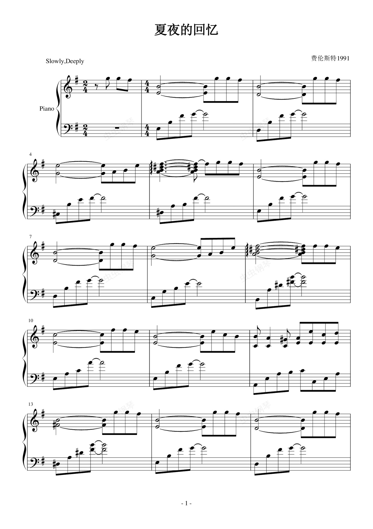 夏日的前半夜还残留着白天的炎热,多少总会让人感到压抑和无助,而后半夜则逐渐凉爽,人也开始感到舒适和清爽,自然就重新找回了那一点久违的自在和温馨。本曲的前半部分的e小调对应着夏日的前半夜,后半部分的G大调则对应着后半夜。希望大家喜欢~