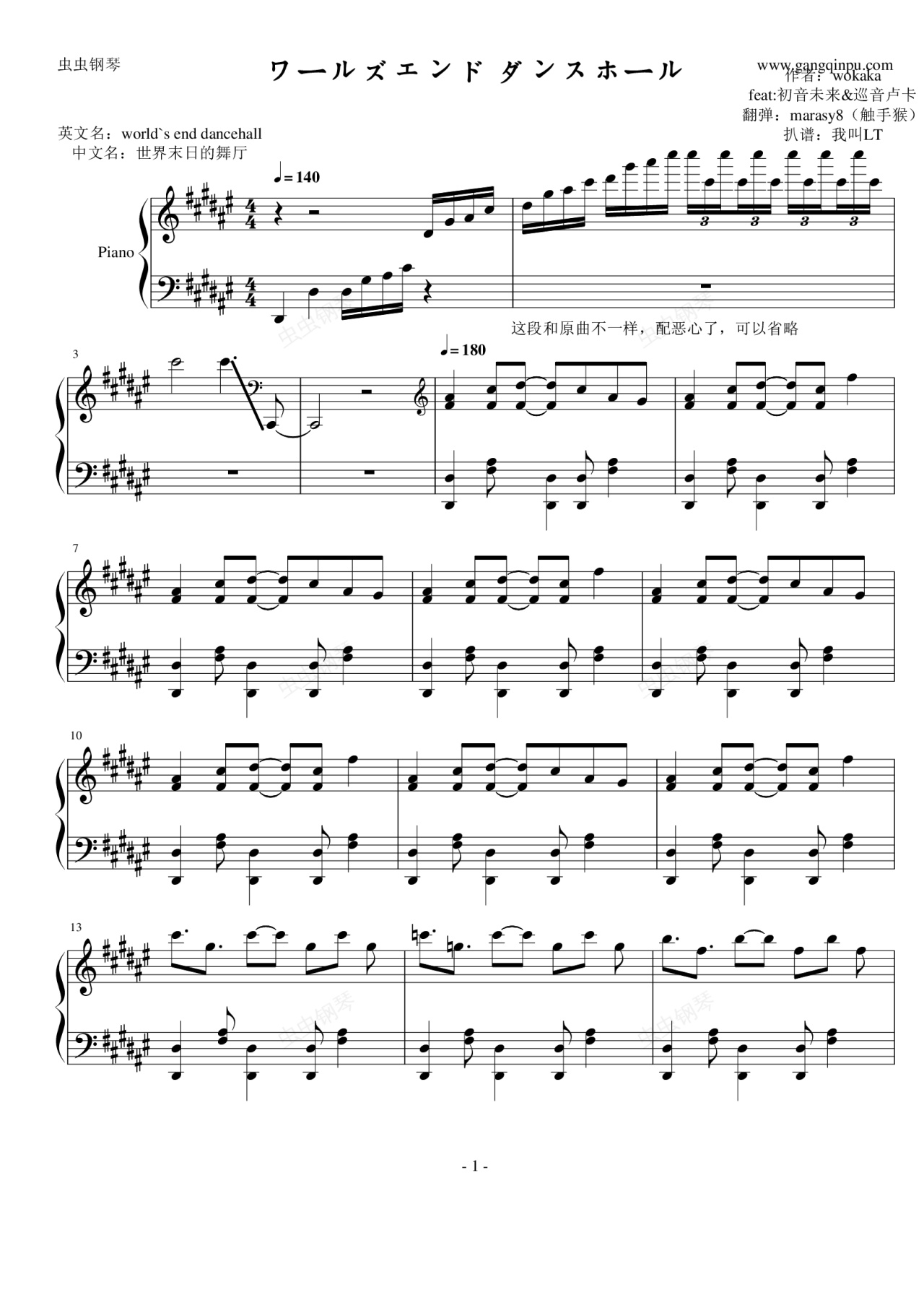 钢琴谱:ワールズエンド ダンスホール(world`s end dancehall)