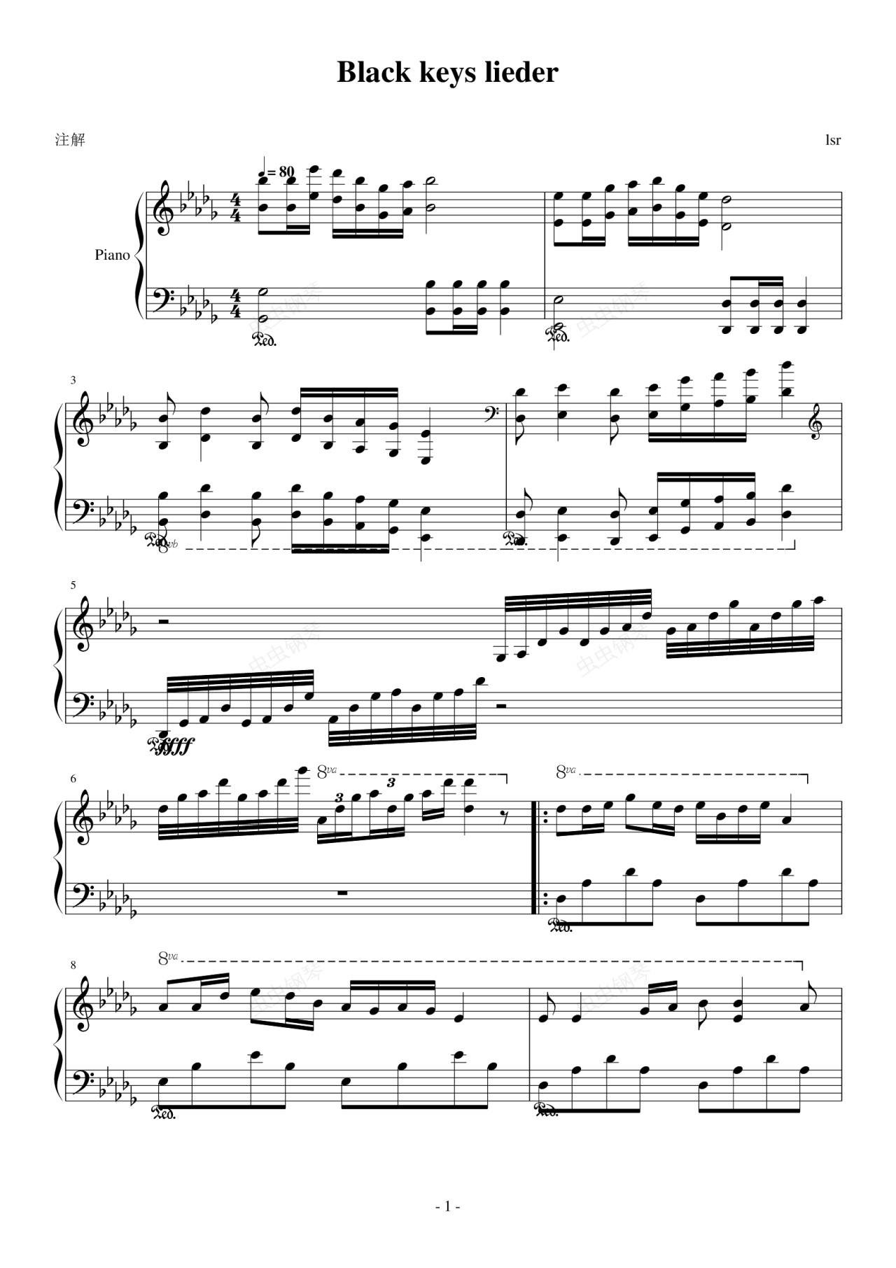 钢琴谱:黑键抒情曲
