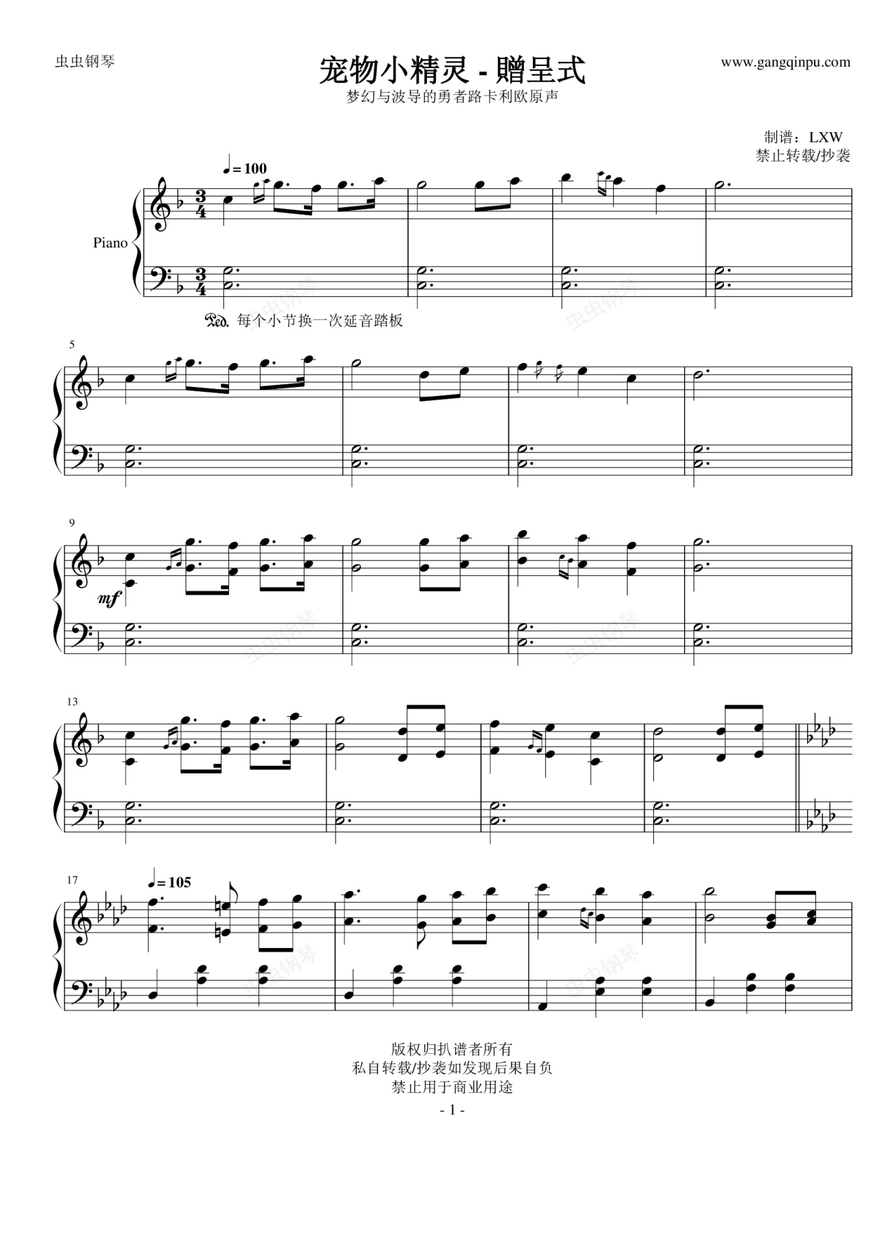 钢琴谱:宠物小精灵 - 波导的勇者 - 贈呈式