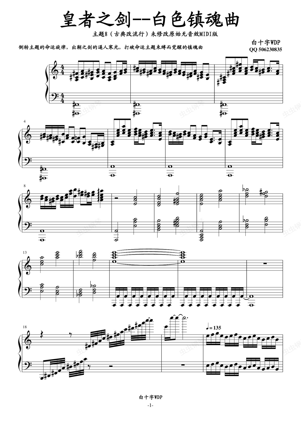 钢琴谱:白十字英雄战曲--白色镇魂曲!