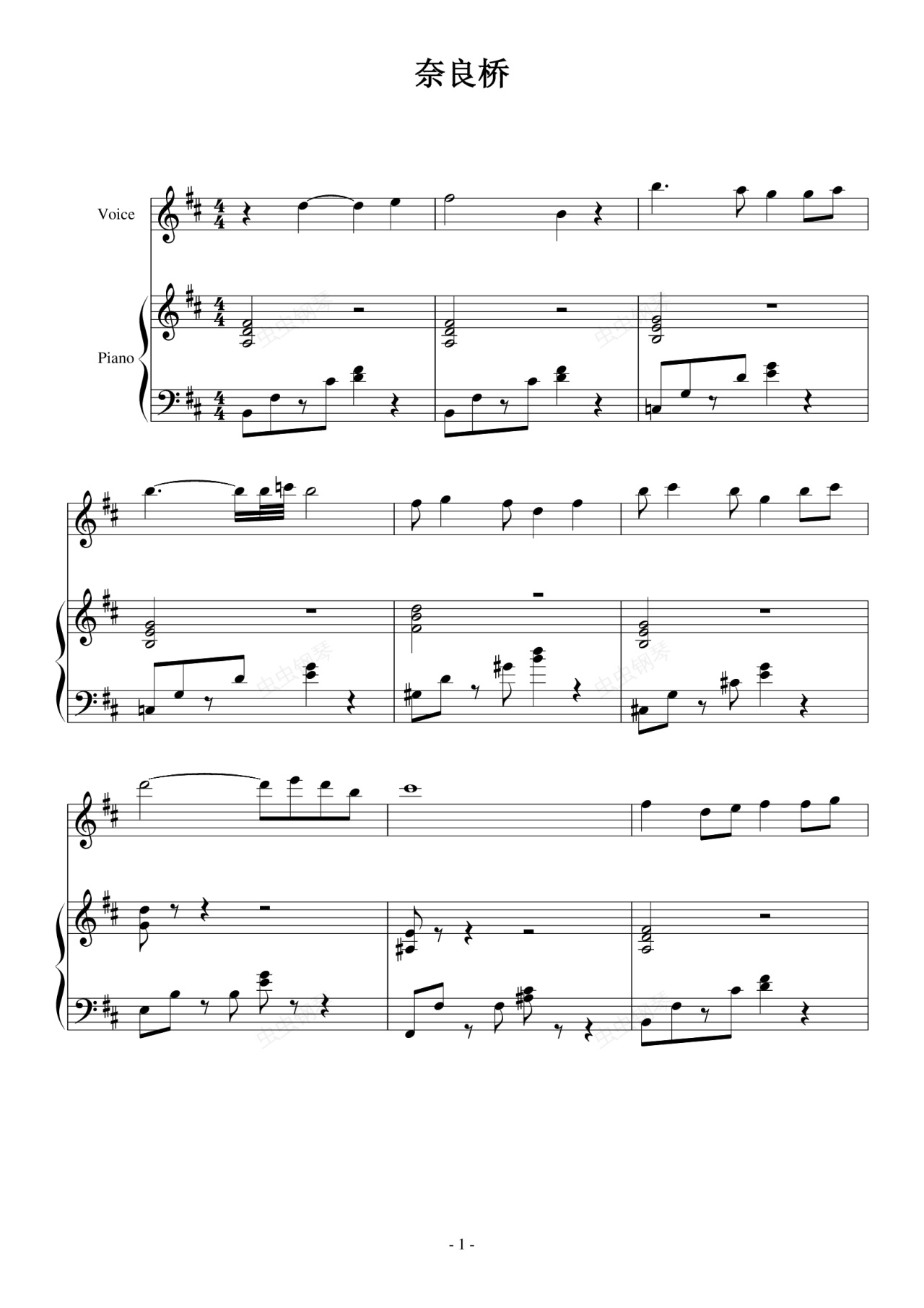 钢琴谱:奈良桥(和风新专辑《花吹雪》收录歌曲)