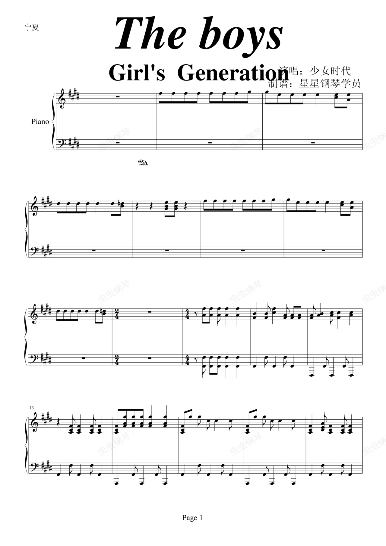 钢琴谱:The boys