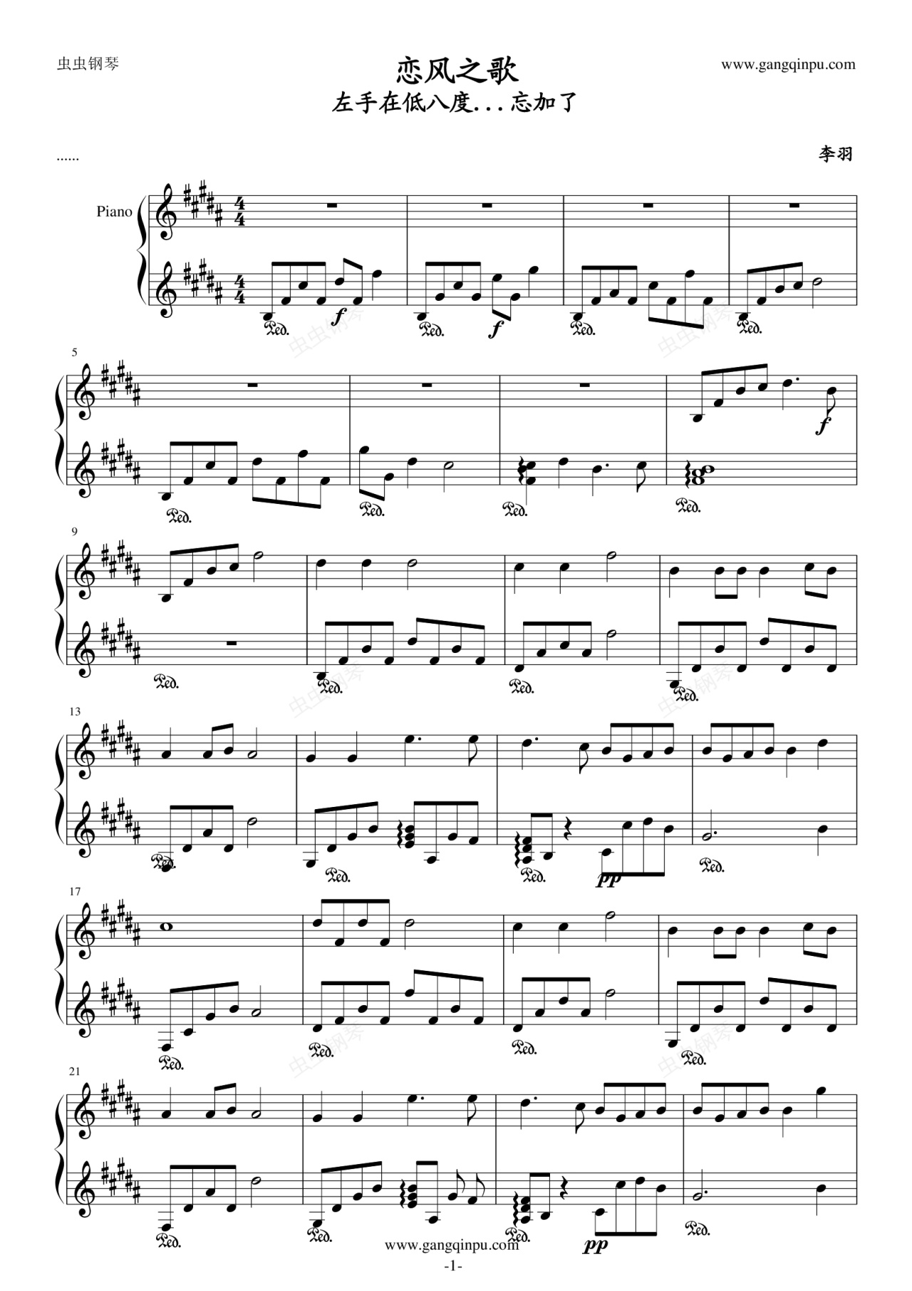 钢琴谱:刘惜君—恋风
