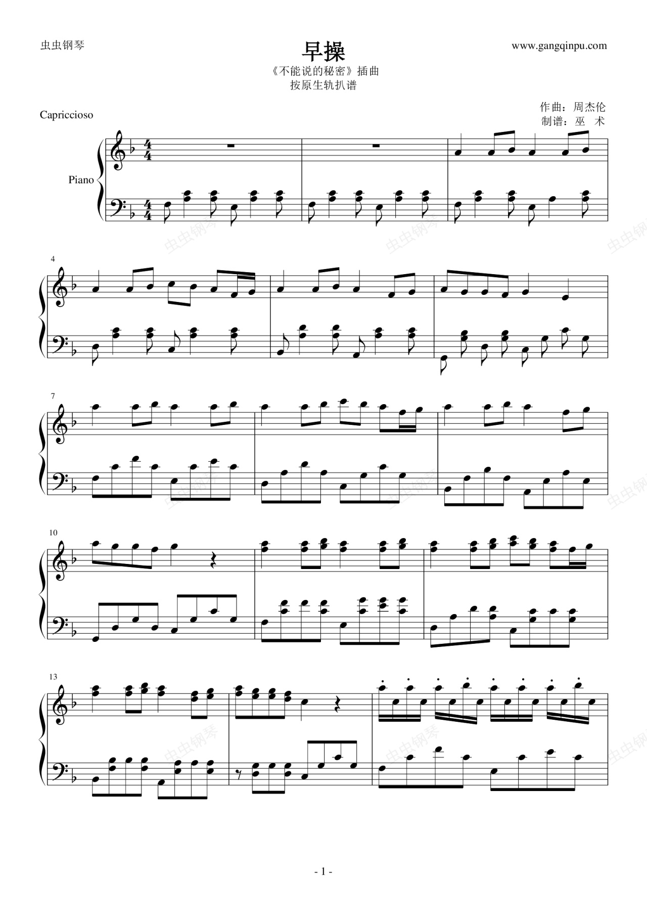 钢琴谱:早操-《不能说的秘密》插曲-原声轨