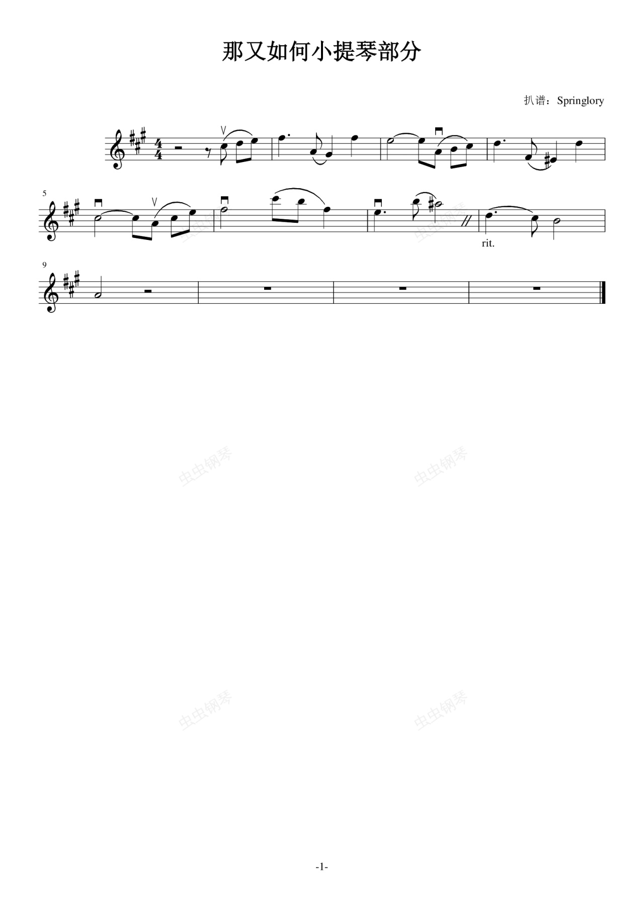钢琴谱:那又如何开头的小提琴部分