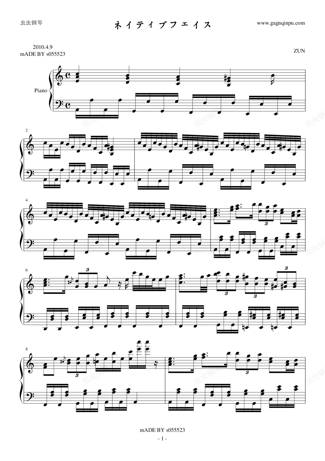 钢琴谱:【NORMAL】ネイティブフェイス(洩矢諏訪子)