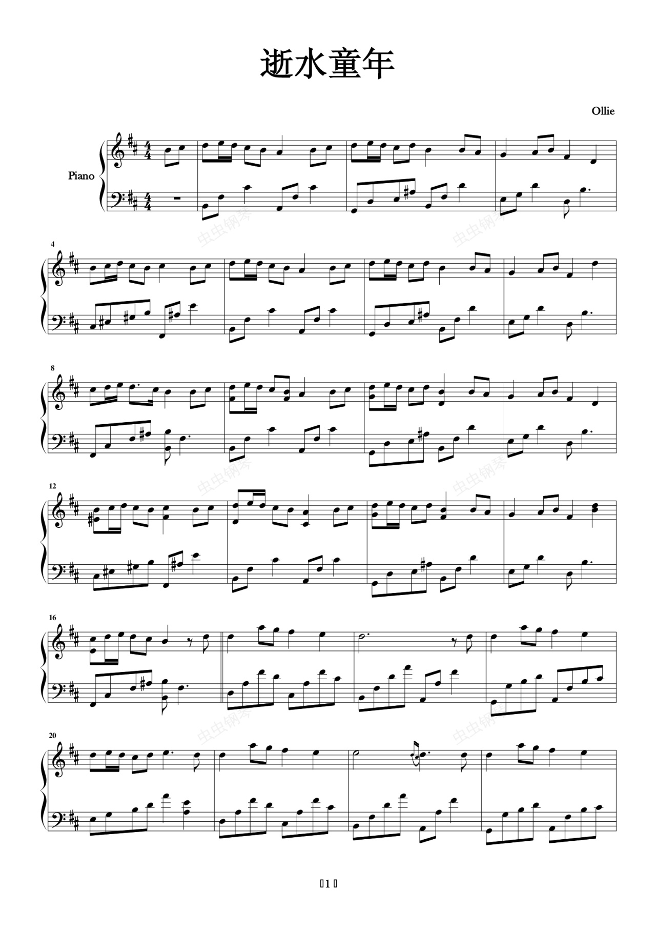 钢琴谱:逝水童年