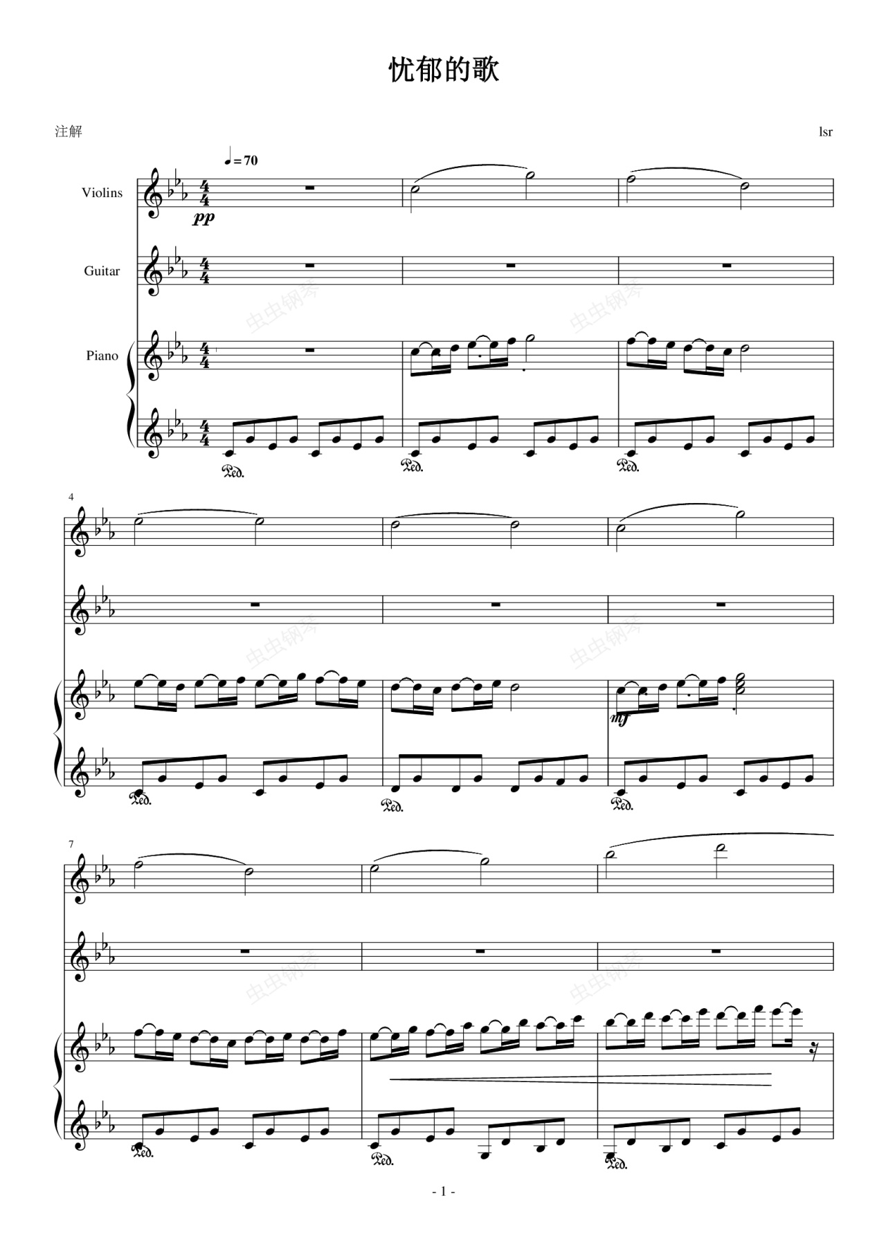 钢琴谱:忧郁的歌