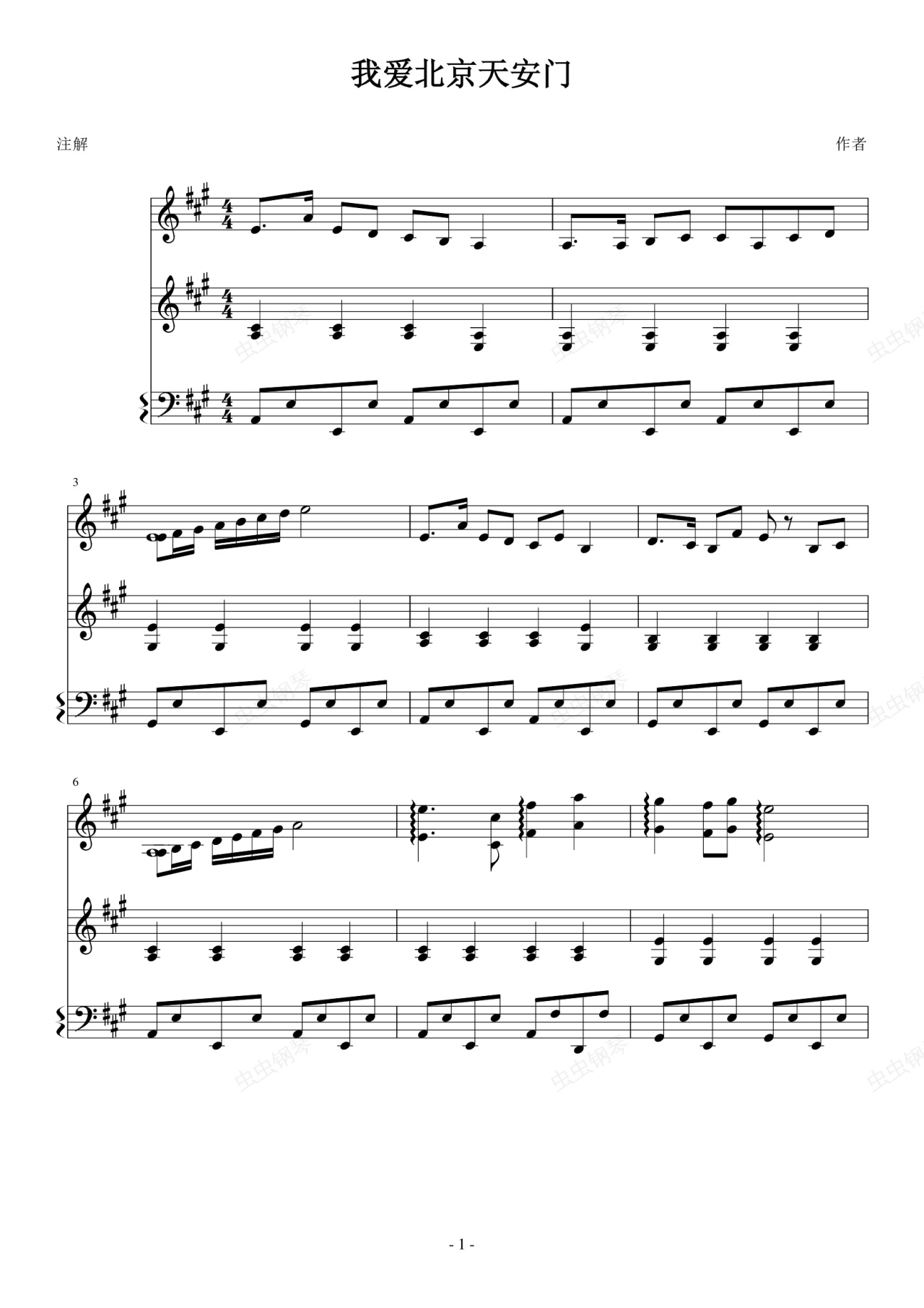 钢琴谱:我爱北京天安门