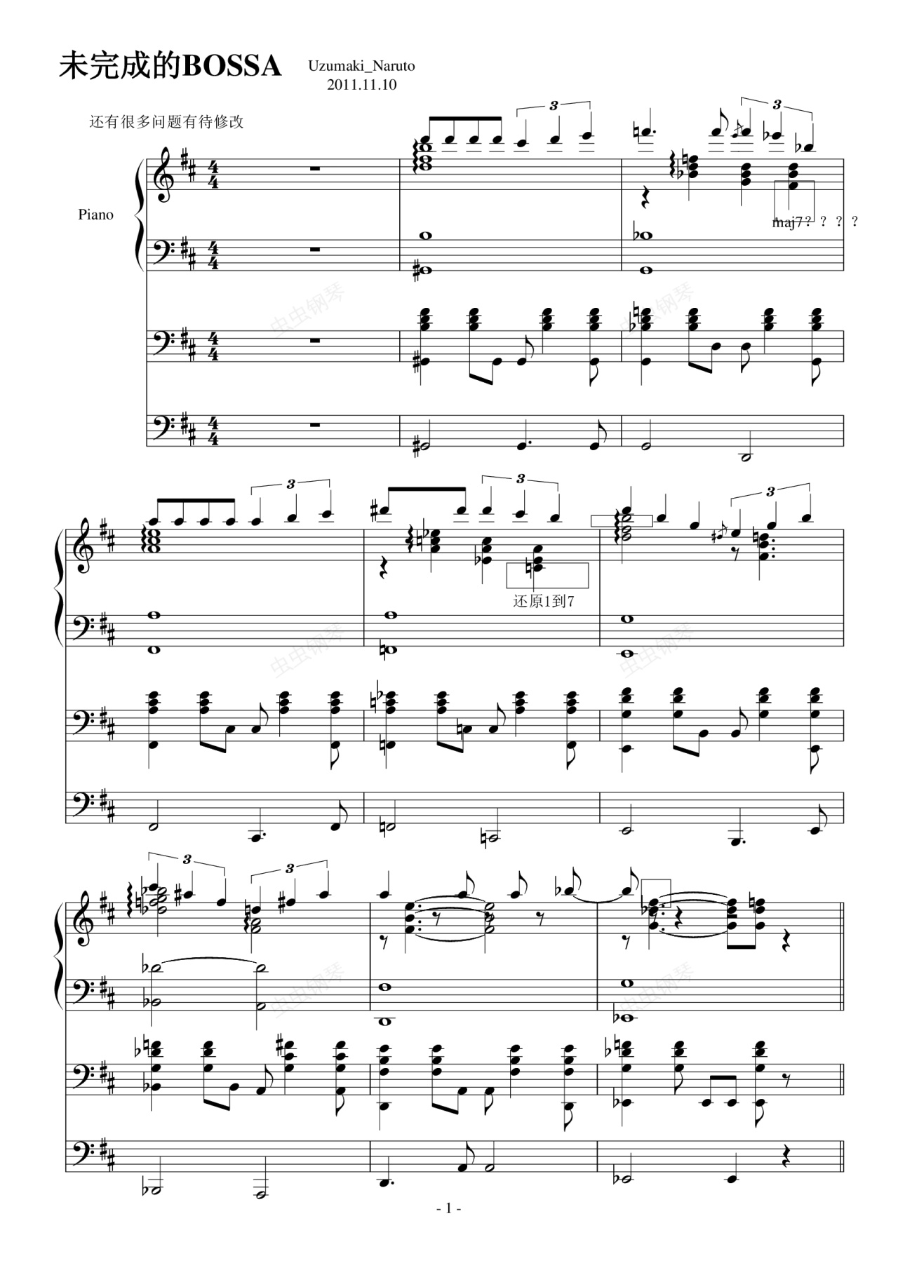 钢琴谱:未完成的巴萨诺瓦