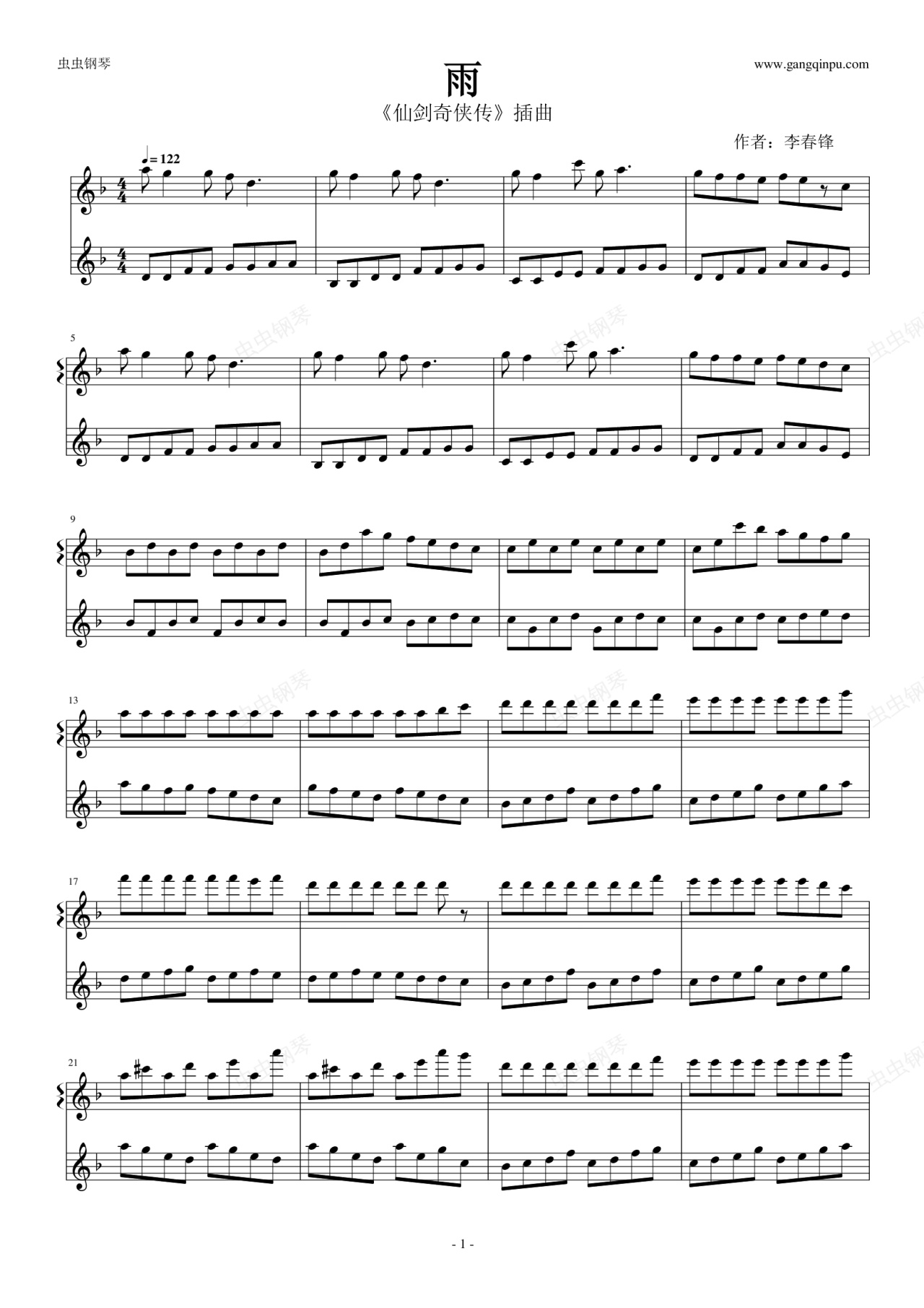 钢琴谱:雨 (仙剑奇侠传插曲)