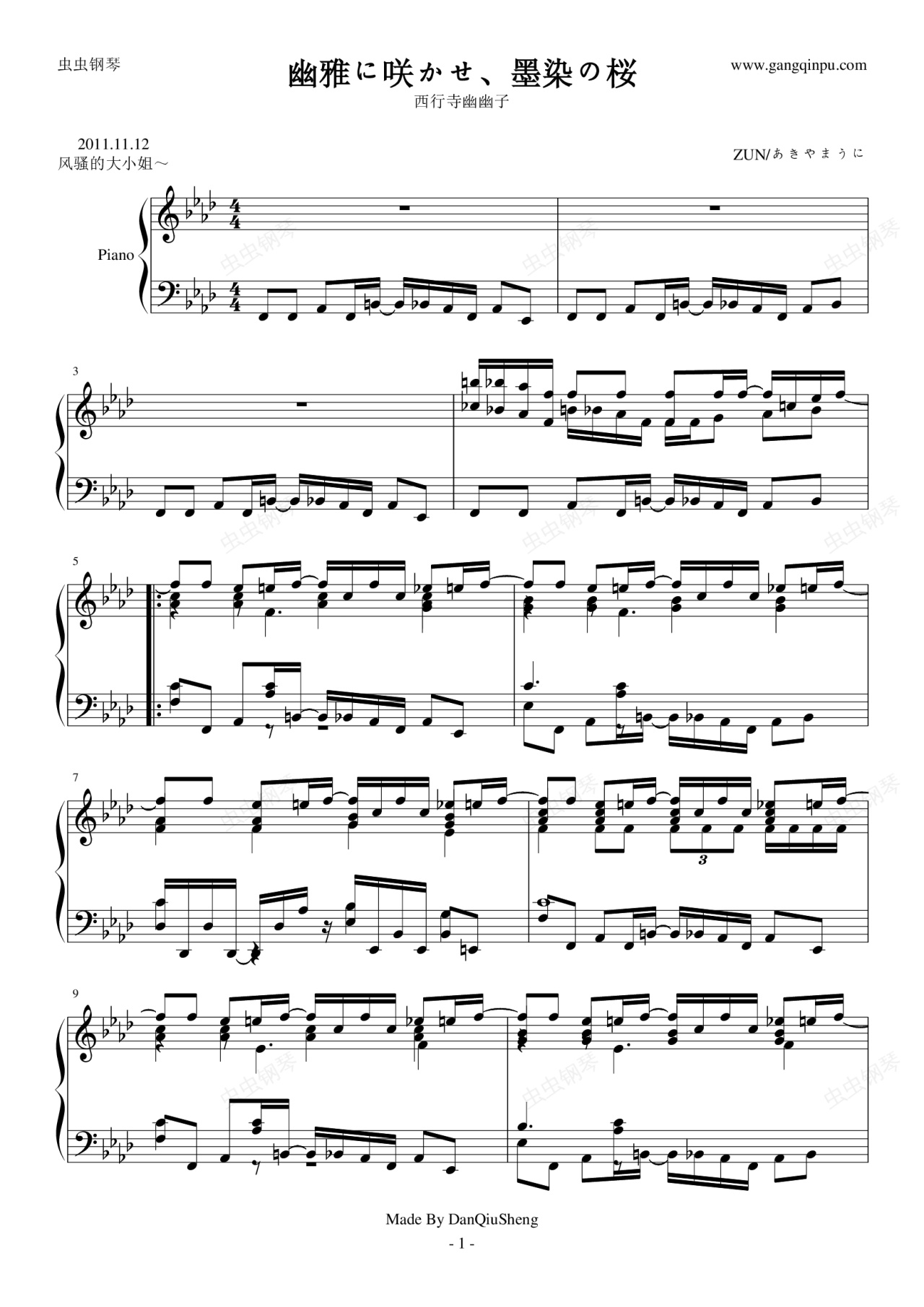钢琴谱:【HARD】幽雅に咲かせ、墨染の桜(西行寺幽幽子,二次改编版)