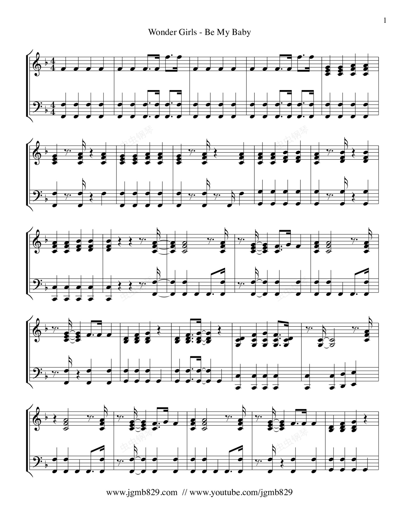 钢琴谱:Be My Baby - Wonder Girls