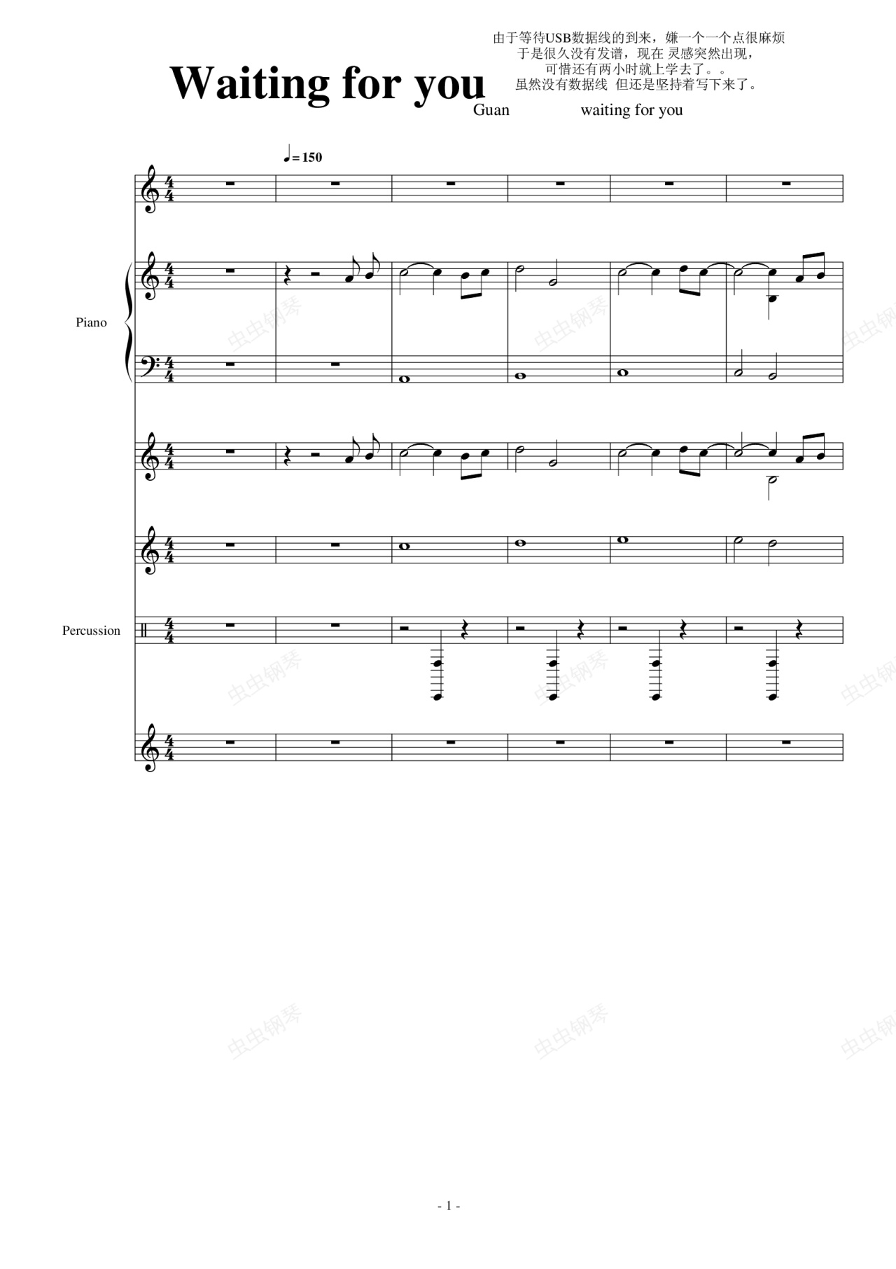 钢琴谱:Waiting for you(未完成版)