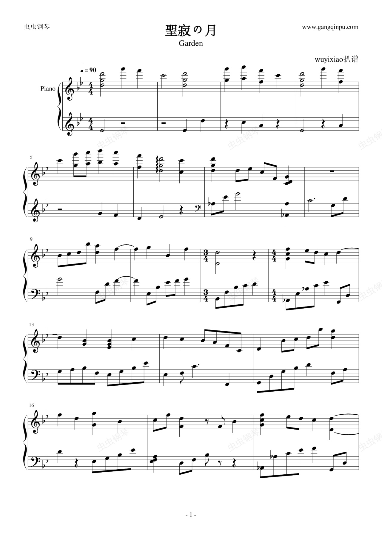 钢琴谱:聖寂の月(Garden-CUFFS)