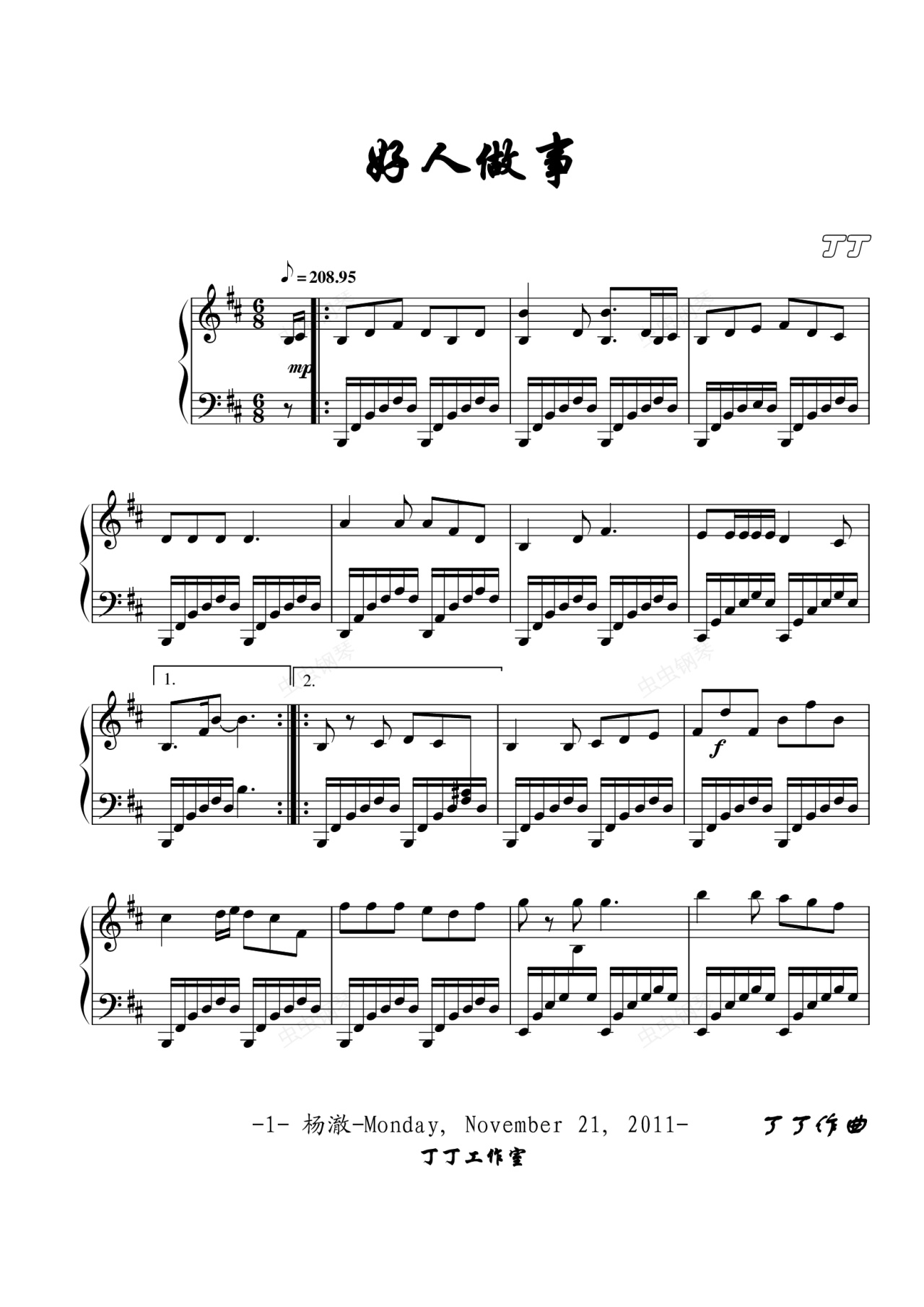 钢琴谱:好人做事
